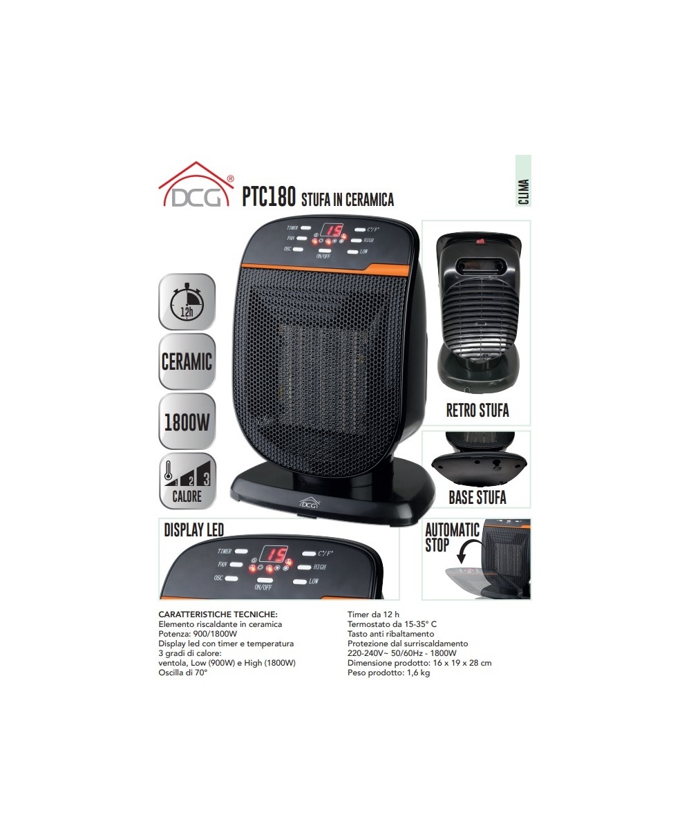 PTC180 è il termoventilatore di DCG dotato di resistenza ceramica.