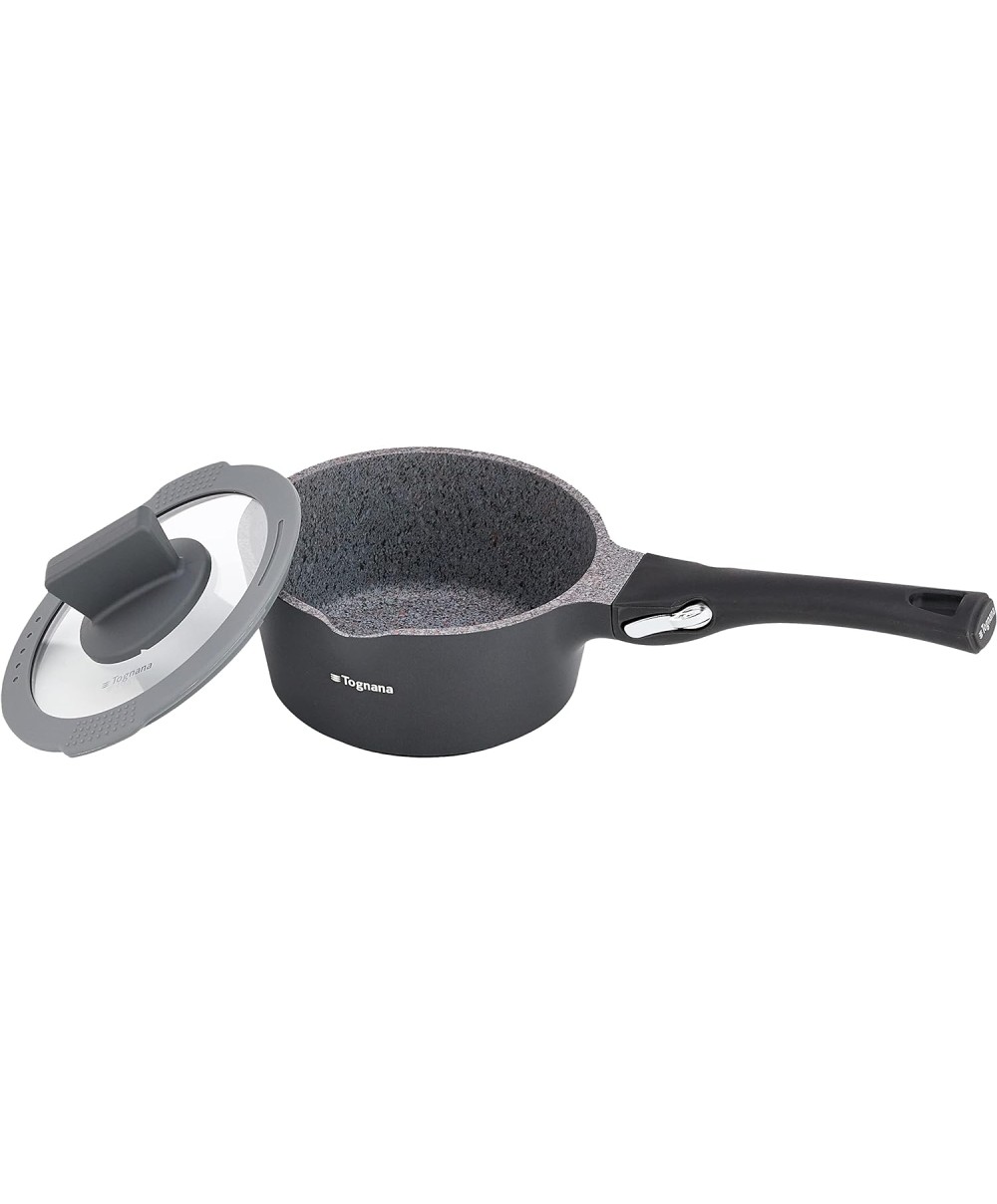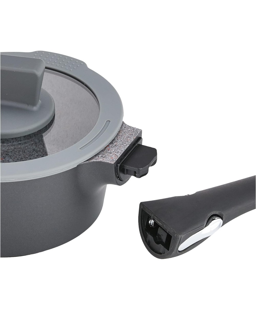 La batteria 8 pezzi della linea Ambiziosa, ha un corpo in alluminio e un rivestimento interno antiaderente effetto granito.