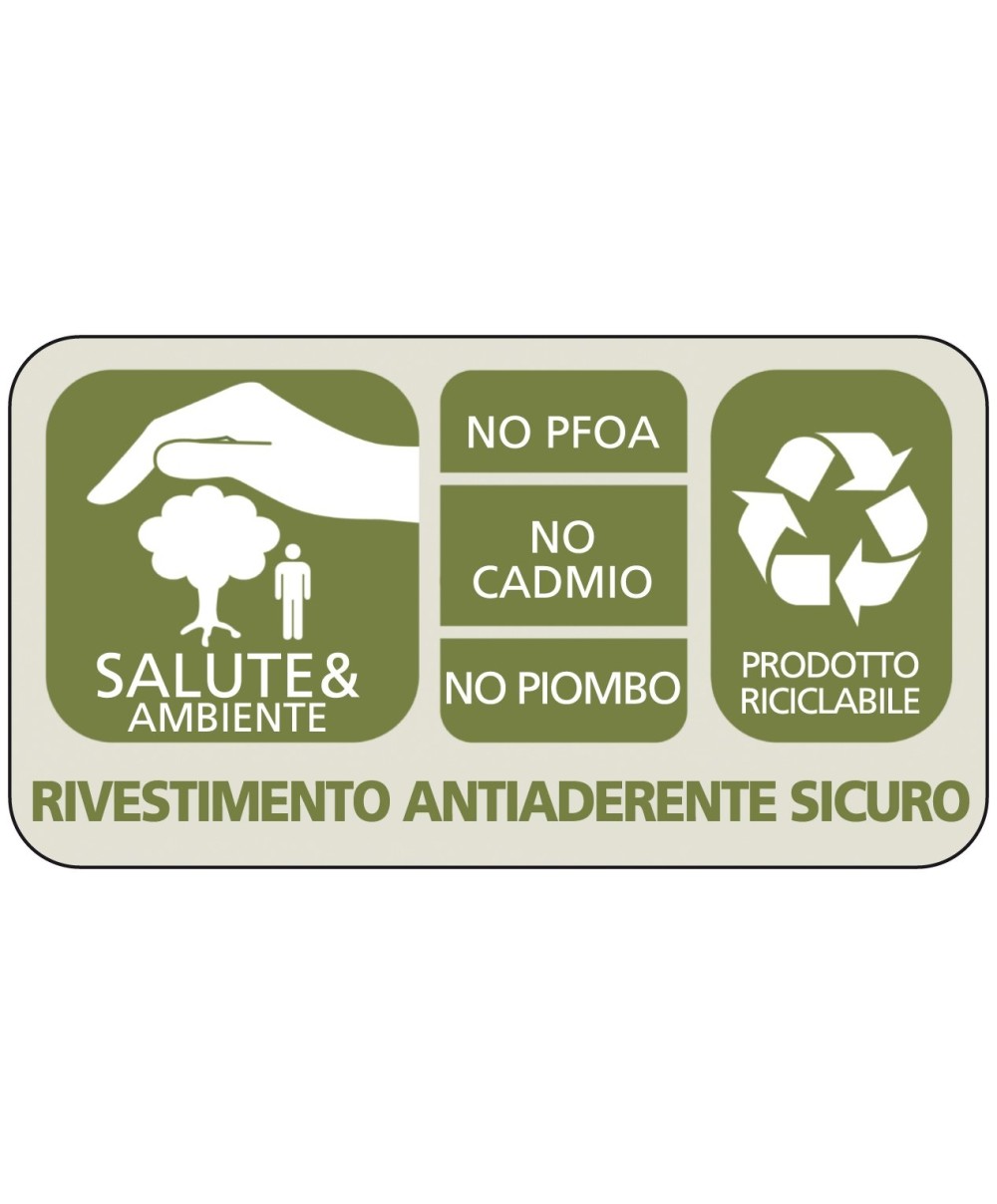 - Rivestimento sicuro: rivestimento antiaderente sicuro e durevole, è la totale garanzia che nel suo lungo ciclo di utilizzo il rivestimento mantiene intatte le proprie caratteristiche, nel pieno rispetto dell’uomo e dell’ambiente. NO PFOA, NO CADMIO, NO PIOMBO