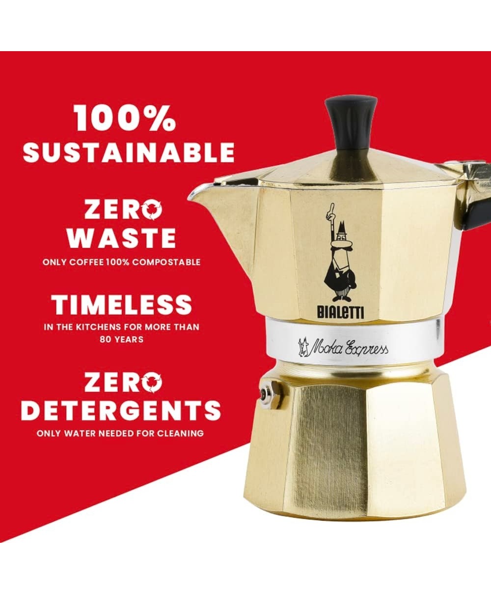 La Moka Express oro è la versione ideale per dare un tocco di eleganza alla tua cucina.