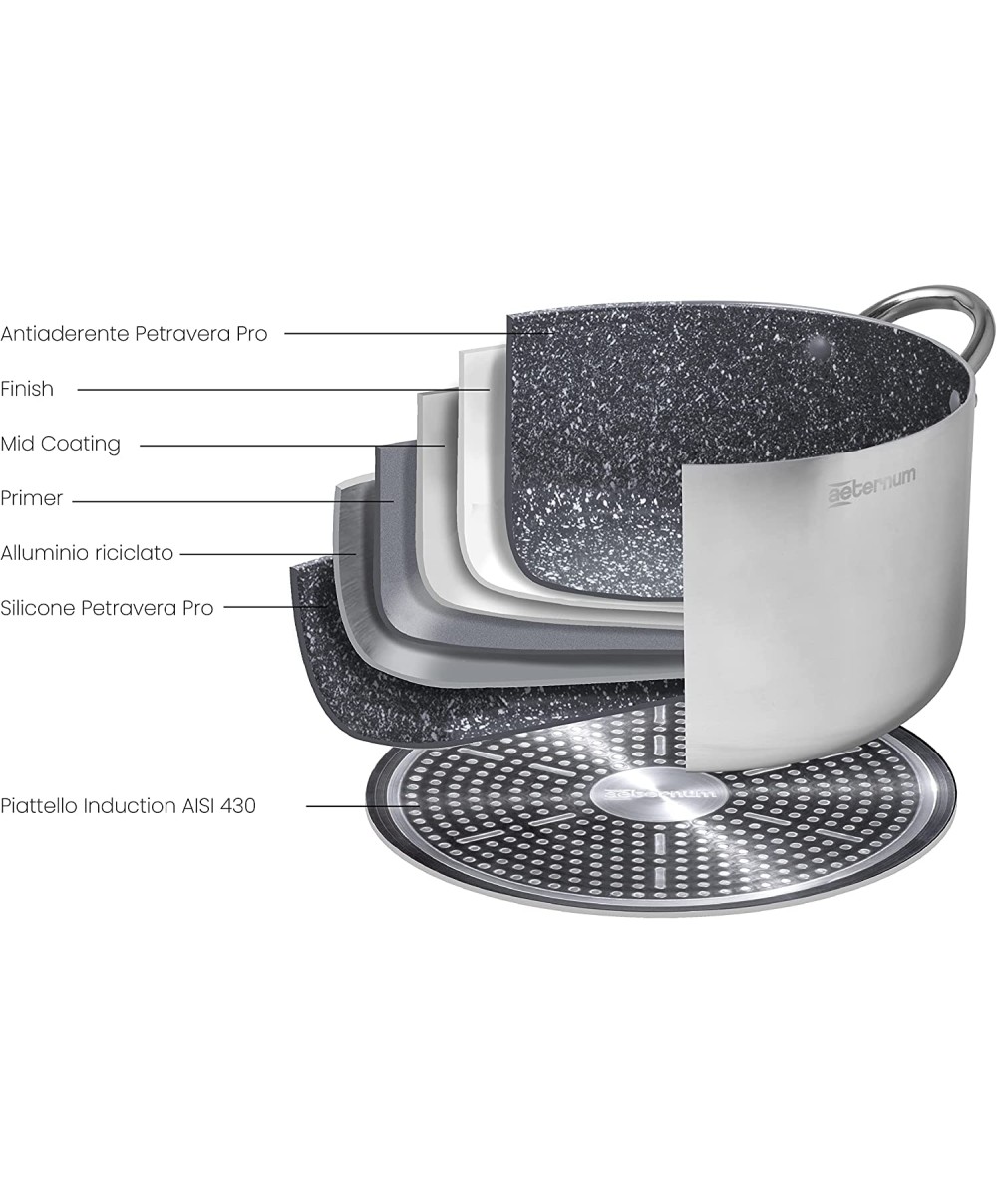 - Rivestimento antiaderente Petravera Pro 2.0 a base acqua privo di PFOA e NICHEL per cucinare in modo più sano (no pfoa no nichel)