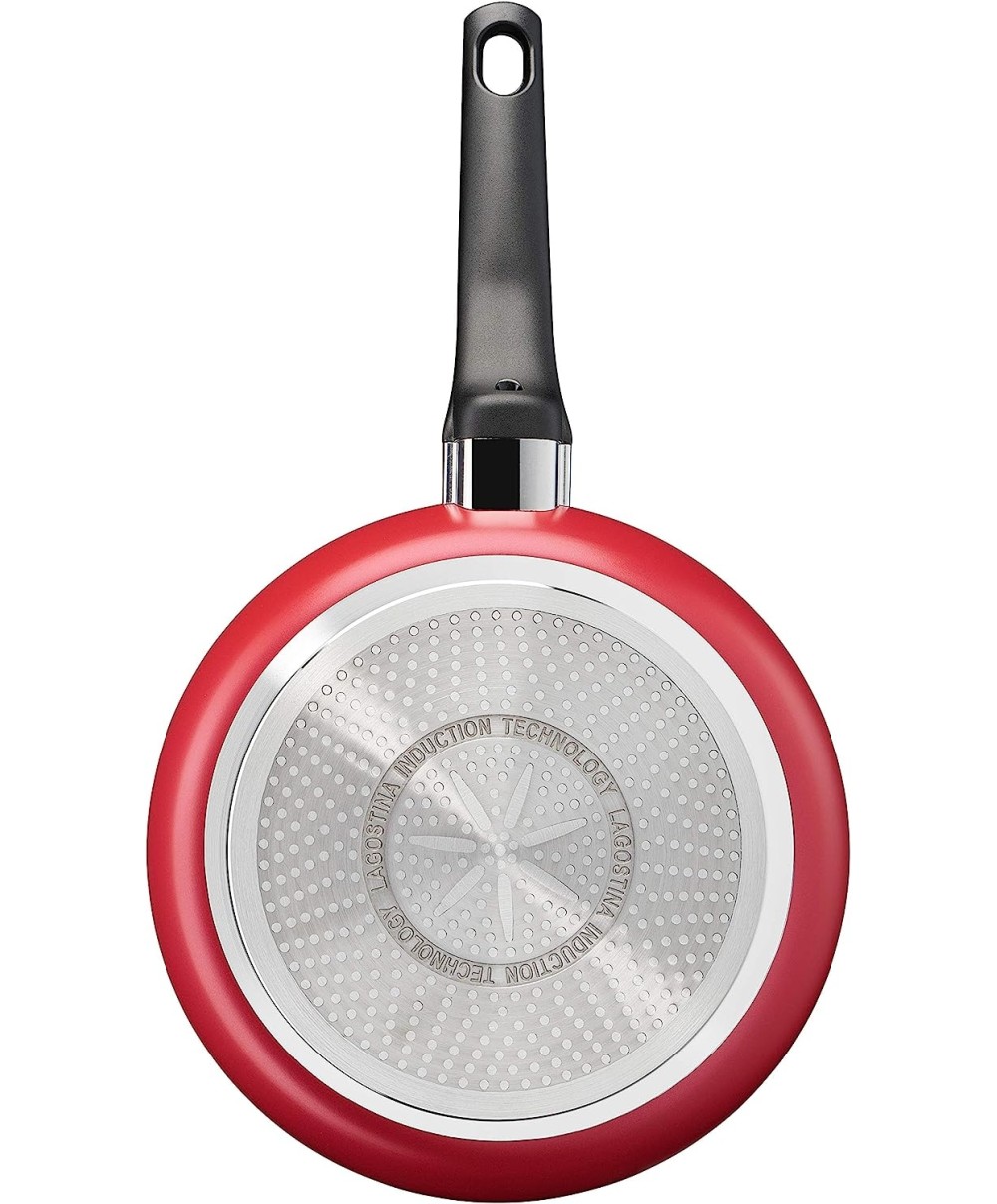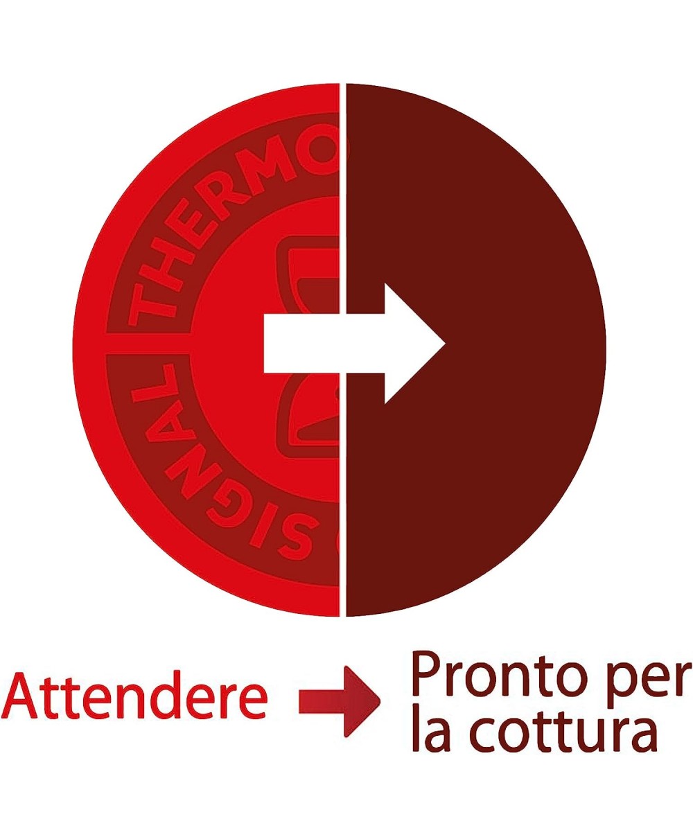 - Padelle dotate di Thermo-signal, l'esclusiva tecnologia brevettata Lagostina che permette di individuare il momento corretto per iniziare la cottura: la padella presenta un bollo al centro che cambia colore quando si raggiungono i 180° e quindi indica il momento ideale per iniziare la cottura.