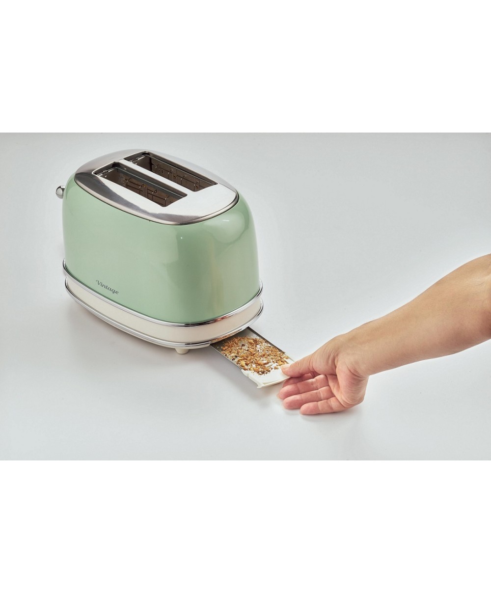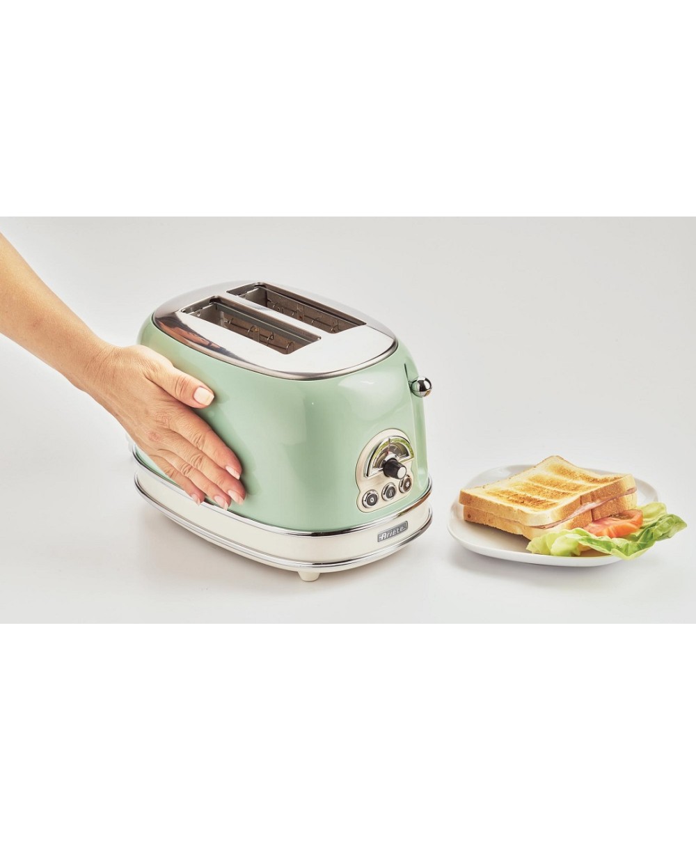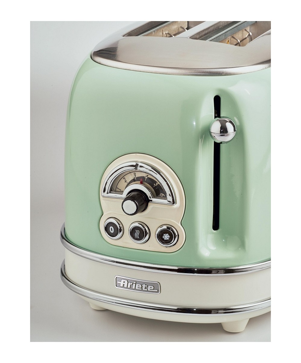 Il tostapane della linea vintage di Ariete tosta contemporaneamente 2 fette di pane, grazie al doppio slot, con la possibilità di scegliere il grado di doratura e tostatura del pane che più preferisci, grazie ai 6 livelli selezionabili tramite le manopole. Le fette vengono espulse automaticamente una volta tostate, evitando spiacevoli bruciature, e le pareti fredde ti garantiscono la massima sicurezza durante l'utilizzo. Non solo pane tostato: con il tostapane Vintage Ariete è possibile anche attivare la funzione defrost, per scongelare in pochi istanti e tostare sandwich e panini farciti, per gustose merende o per le pause pranzo più veloci. Il design Vintage, dalle linee morbide e retrò e i colori pastello, rendono il tostapane Vintage un elettrodomestico per arredare la tua cucina con uno stile shabby chic.