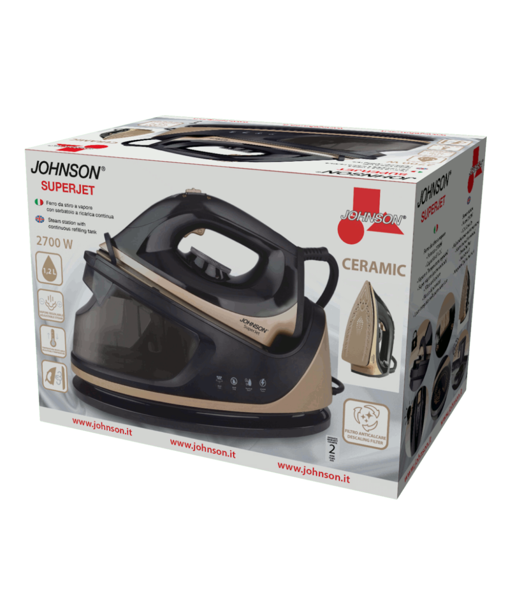 SUPERJET, di JOHNSON Elettrodomestici, è il sistema stirante ad alta pressione, con serbatoio della capacità di 1,2 L a ricarica continua, dal design compatto e dai materiali di qualità, per stirare in modo efficiente ed impeccabile.