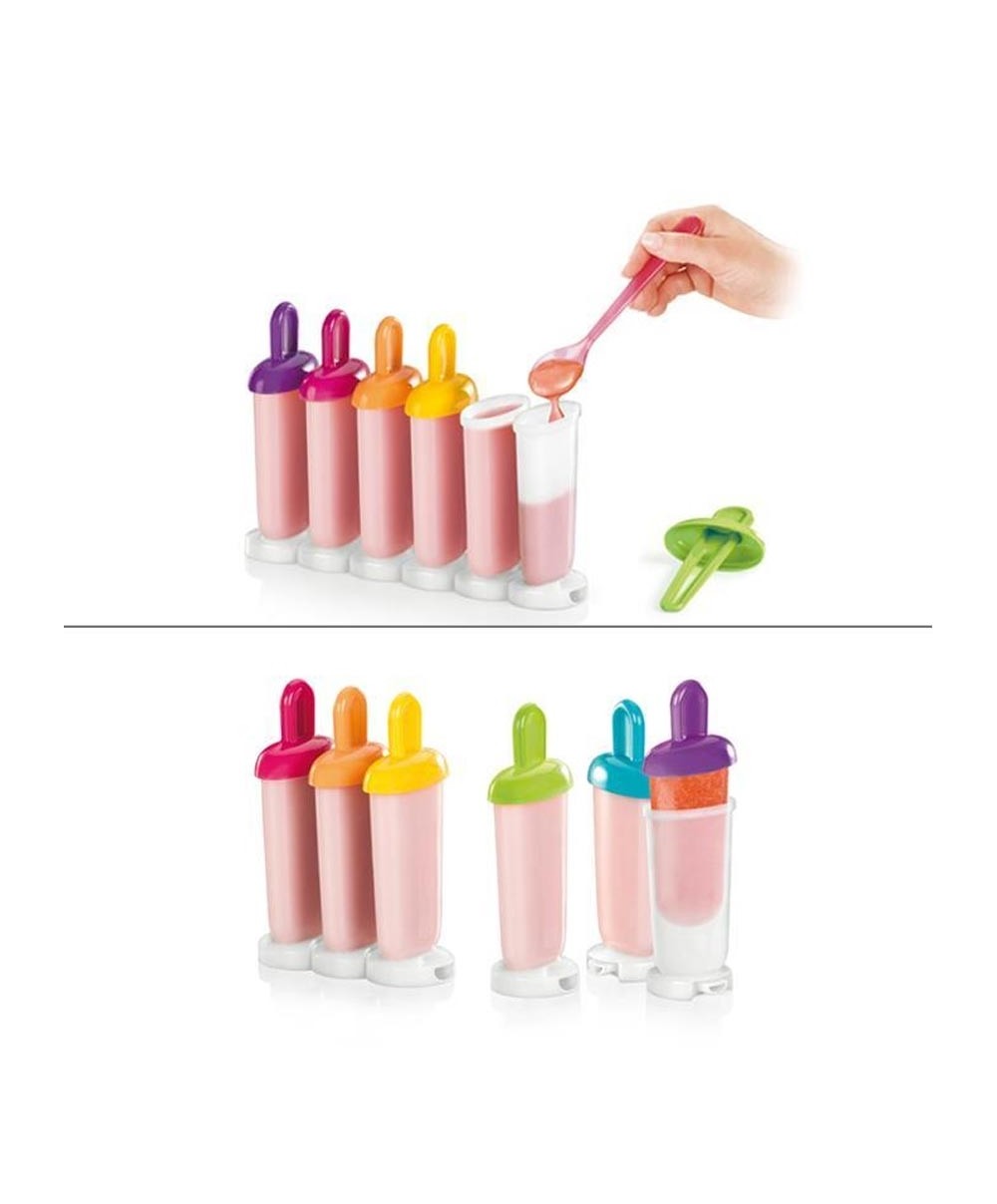 Se vuoi preparare in casa gelati e ghiaccioli, ti servono gli stampi appositi: questi sono perfetti per i gelati in formato mini! Sono 6, con impugnatura colorata e supporto per tenerli in freezer. Ogni stampo e ogni supporto si collegano gli uni agli altri, ma li puoi estrarre dal freezer anche singolarmente. Perfetti per preparare ghiaccioli con sciroppi di frutta, gelati alle creme o golosi sorbetti di frutta frullata. Sono in plastica resistente e sicura.