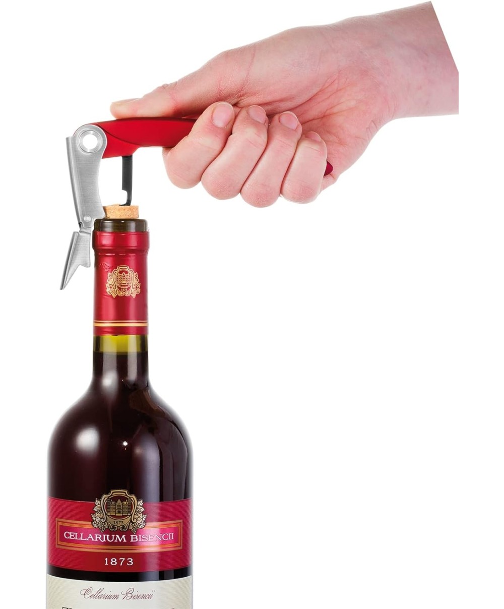 Il cavatappi “da cameriere” è uno dei modelli più tradizionali e diffusi, molto usato dai camerieri perché è pratico e tascabile. Il sistema a doppia leva aiuta a rimuovere velocemente il tappo dalle bottiglie e facilita l’estrazione dei tappi in sughero particolarmente lunghi, e anche di quelli leggermente danneggiati o bagnati. Ha anche una lama levacapsule: è affilata, usala come un coltellino per incidere la capsula di protezione dalle bottiglie.