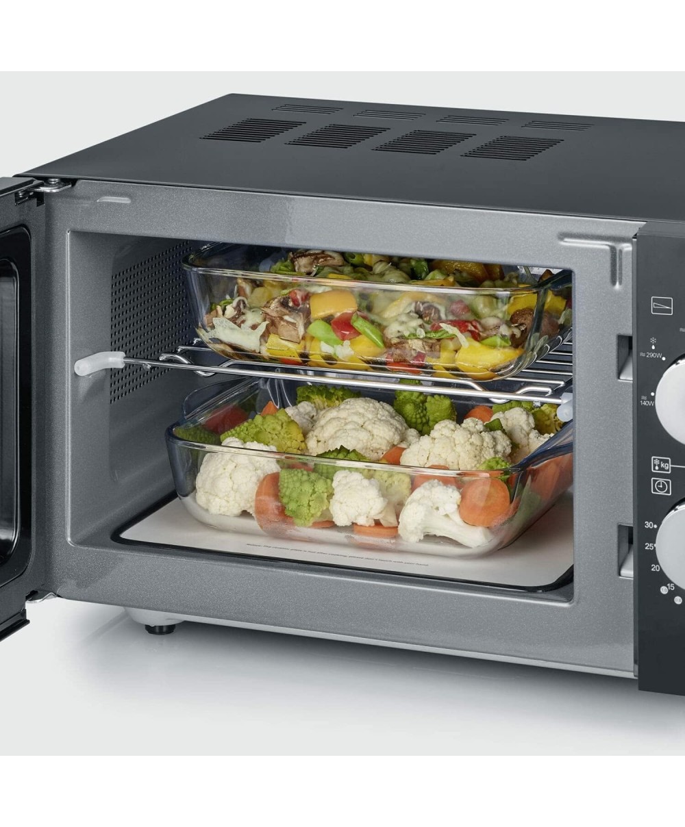 Il Microonde 2 in 1 rappresenta la soluzione perfetta per riscaldare, cucinare, cuocere al forno e grigliare. Progettato per massimizzare l’efficienza in cucina, l’interno del Microonde 2 in 1 è più ampio rispetto ai modelli standard, e ‘l’assenza del piatto girevole consentendo l’inserimento di pirofile rettangolari o piatti di grandi dimensioni, rendendolo l’ideale per ogni piatto.