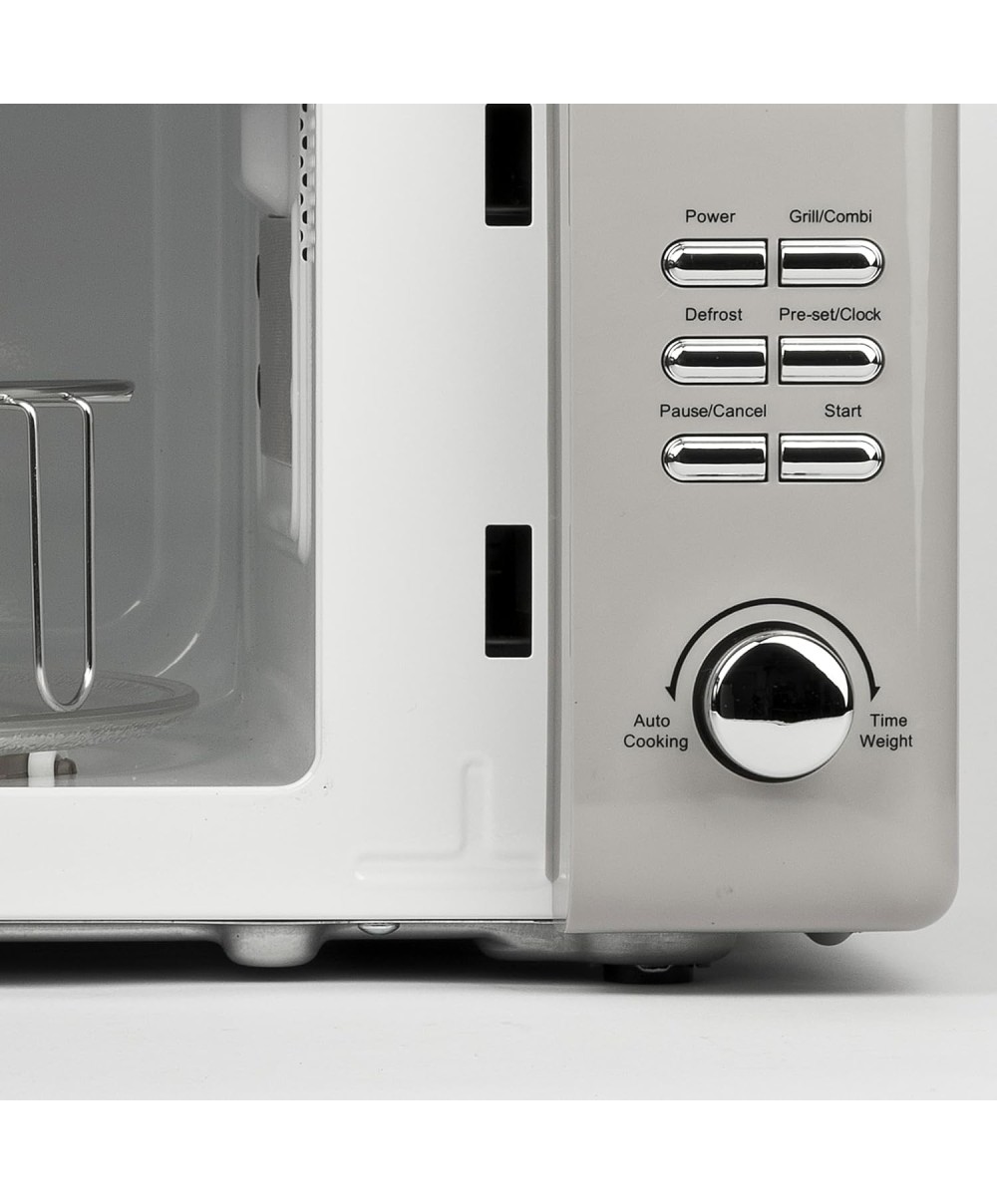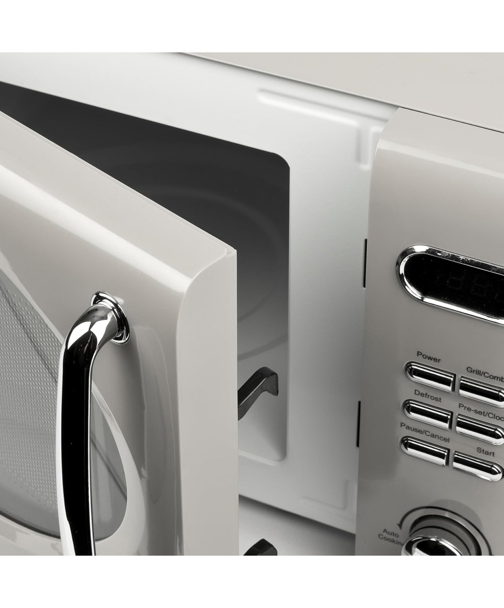 Dal design lineare dal sapore vintage, il forno a microonde Sapormio Vintage è compatto, semplice da usare e capace di garantirvi sempre la massima qualità. Dotato di ottima capacità interna di 20 litri, questa unità è perfetta per un appartamento, riuscendo al contempo a soddisfare le esigenze di tutta la famiglia. Ideale per cuocere piatti singoli, preparare alimenti surgelati grazie alla pratica funzione scongelamento o riscaldare le bevande in pochi secondi, il nostro microonde Sapormio Vintage è equipaggiato con pannello comandi elettronico e 4 modalità di cottura (microonde, grill, combinata, scongela), per la massima praticità in cucina.