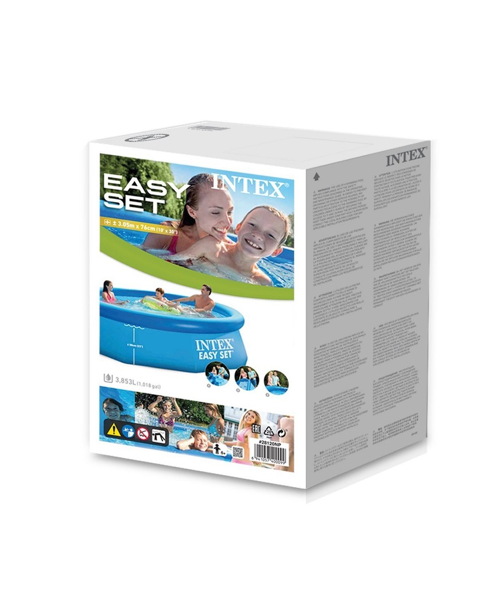 28120 di Intex è la piscina fuori terra autoportante con un diametro di 305 cm ed un'altezza di 76 cm. Basta gonfiare l'anello alla sommità del liner e riempire la struttura d'acqua e sarete pronti per mille giochi d'acqua.
