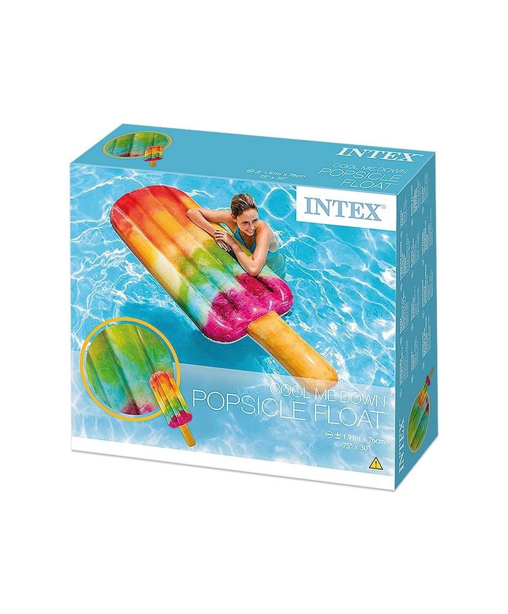58766 è il materassino gonfiabile a forma di ghiacciolo realizzato da Intex. È realizzato in vinile multistrato con effetto realistic printin. Dimensioni: 191 x 76 cm.