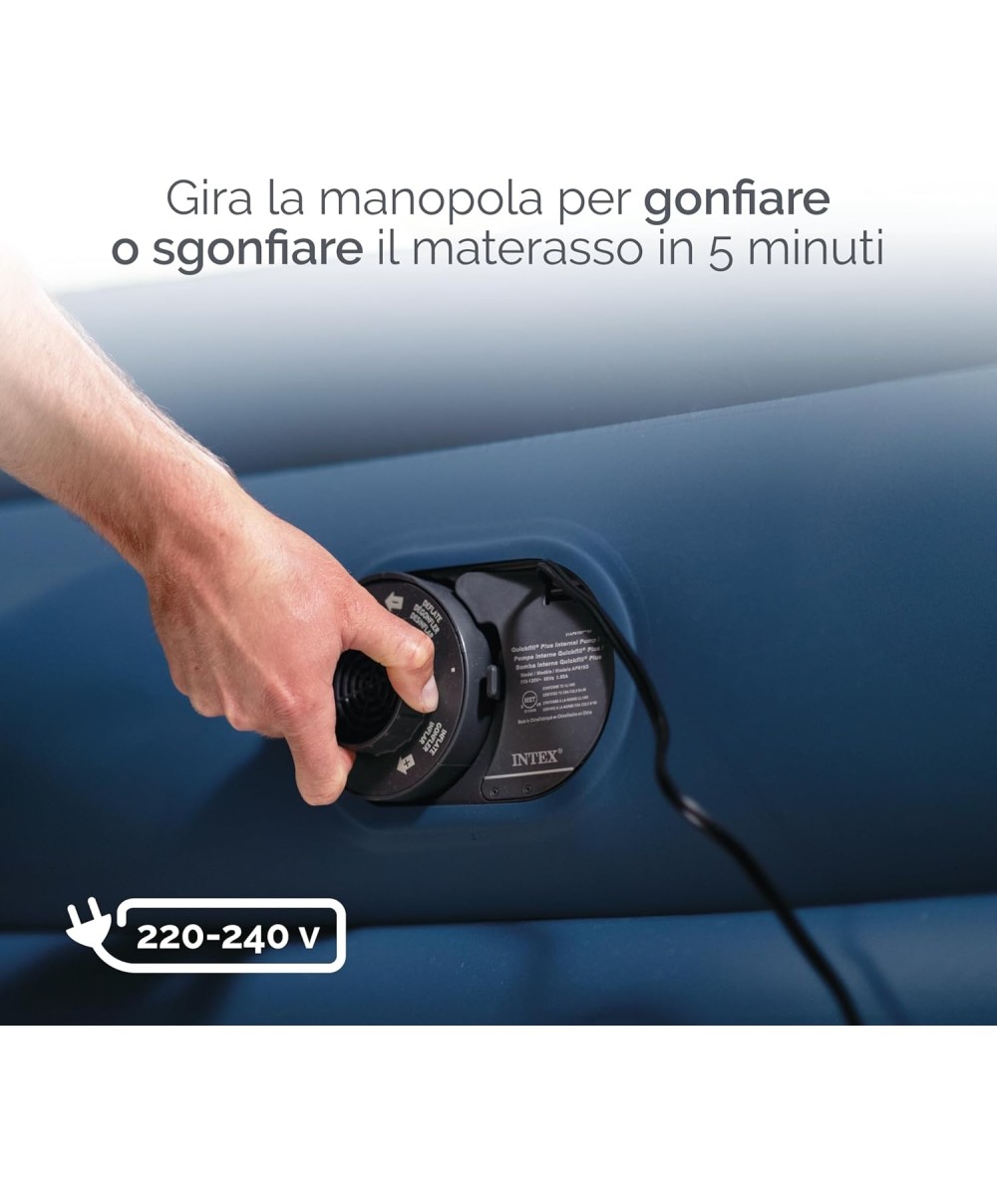 - Con la nuova pompa elettrica integrata QuickFill Plus ti basteranno meno di 5 minuti per goderti il tuo riposo: ruota la manopola e gonfia o sgonfia!