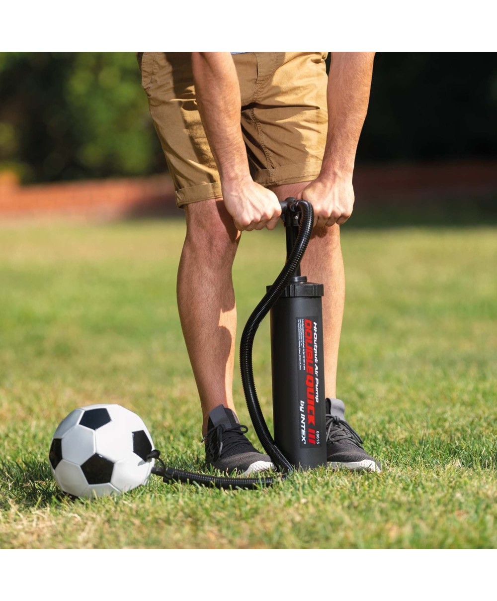 La pompa manuale 68615 di Intex ha un'elevata potenza di gonfiaggio e sgonfiaggio e tra i 4 adattatori inclusi nella confezione uno è molto grande ed è adatto per il gonfiaggio dei palloni sportivi con ago (fino a 8 psi).