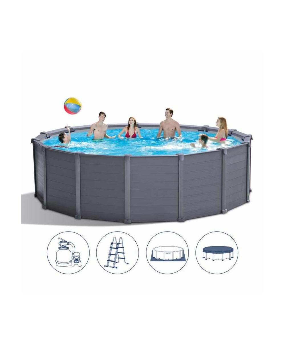 Piscina fuoriterra Intex 26384 rotonda Graphite Gray Panel 478 x 124 cm