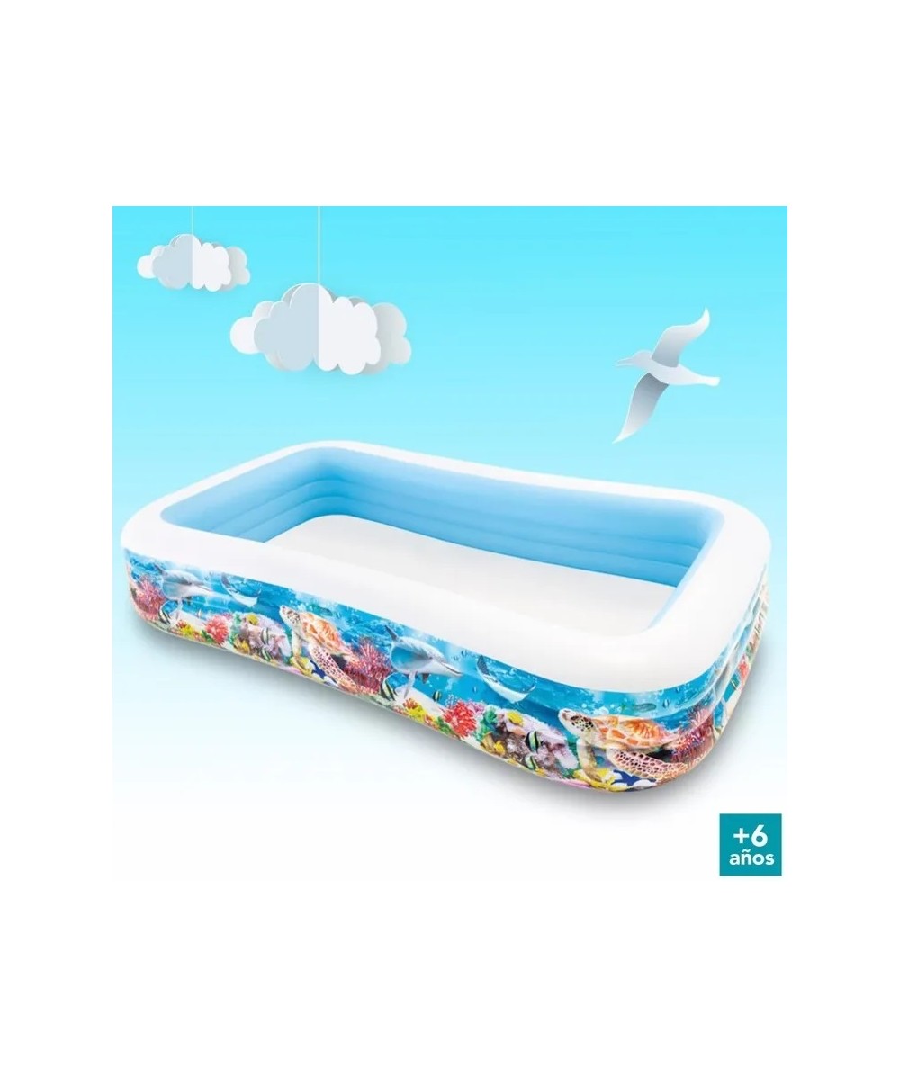 La vasca rettangolare ha lati robusti decorati con immagini di pesci, 3 camere d'aria e una doppia valvola.