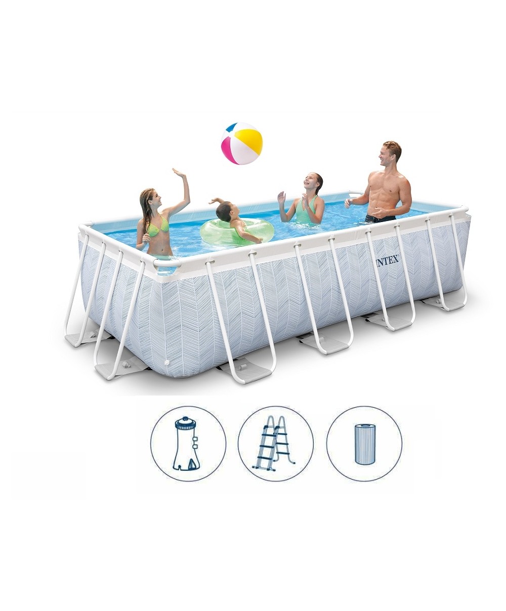 26780 è la piscina rettangolare Prisma Frame Chevron di Intex progettata per offrire un tocco di eleganza a qualsiasi giardino: l'effetto rigato di colore azzurro a lisca di pesce darà un tocco di unicità alla vostra piscina fuoriterra.