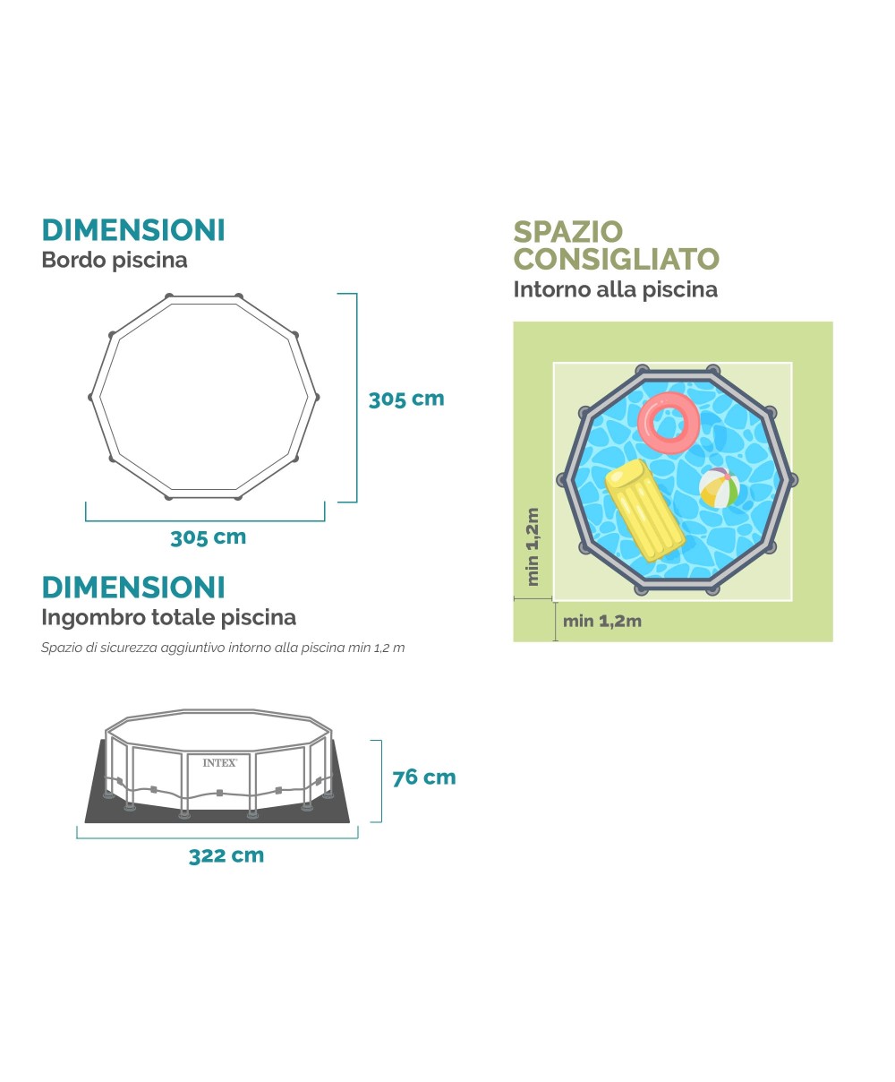 - Dimensioni: ø 305 x 76 cm