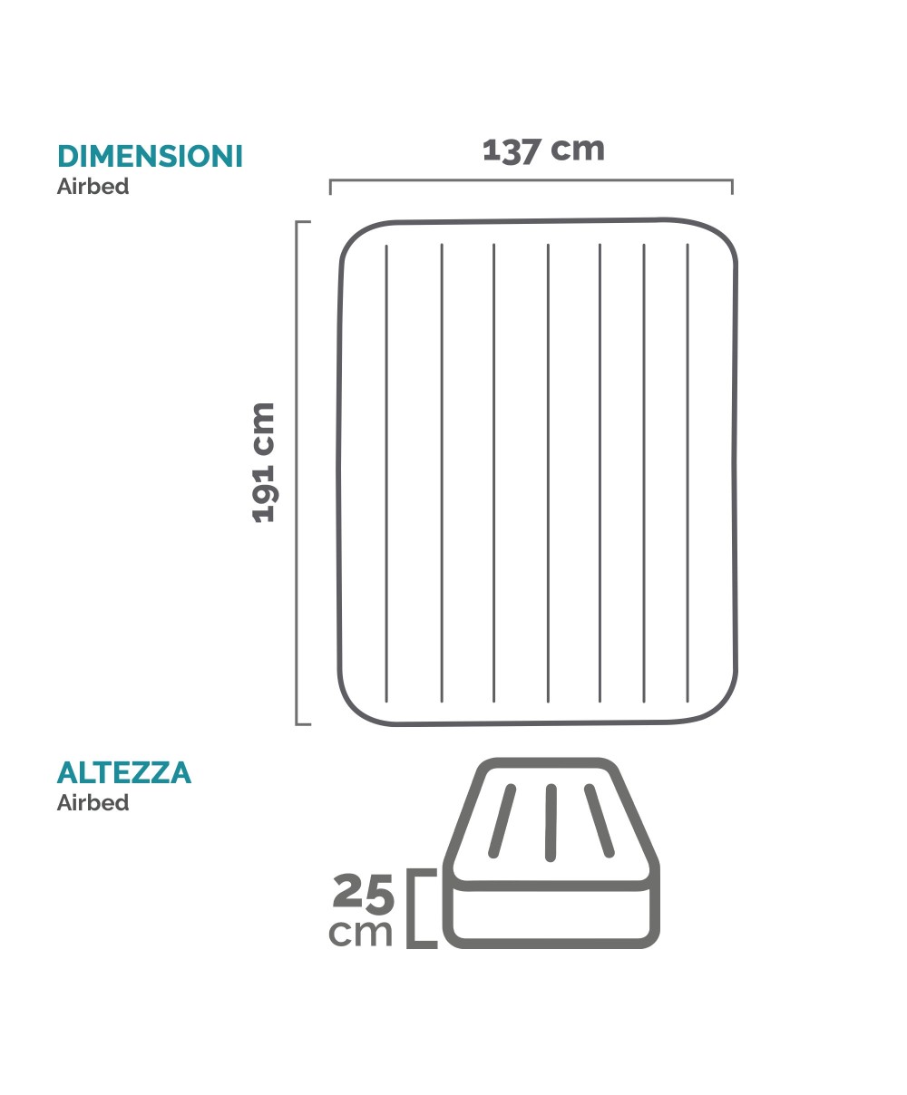 - Struttura Dura-Beam Standard, alto 25 cm, che rende l'Airbed leggero ma stabile
