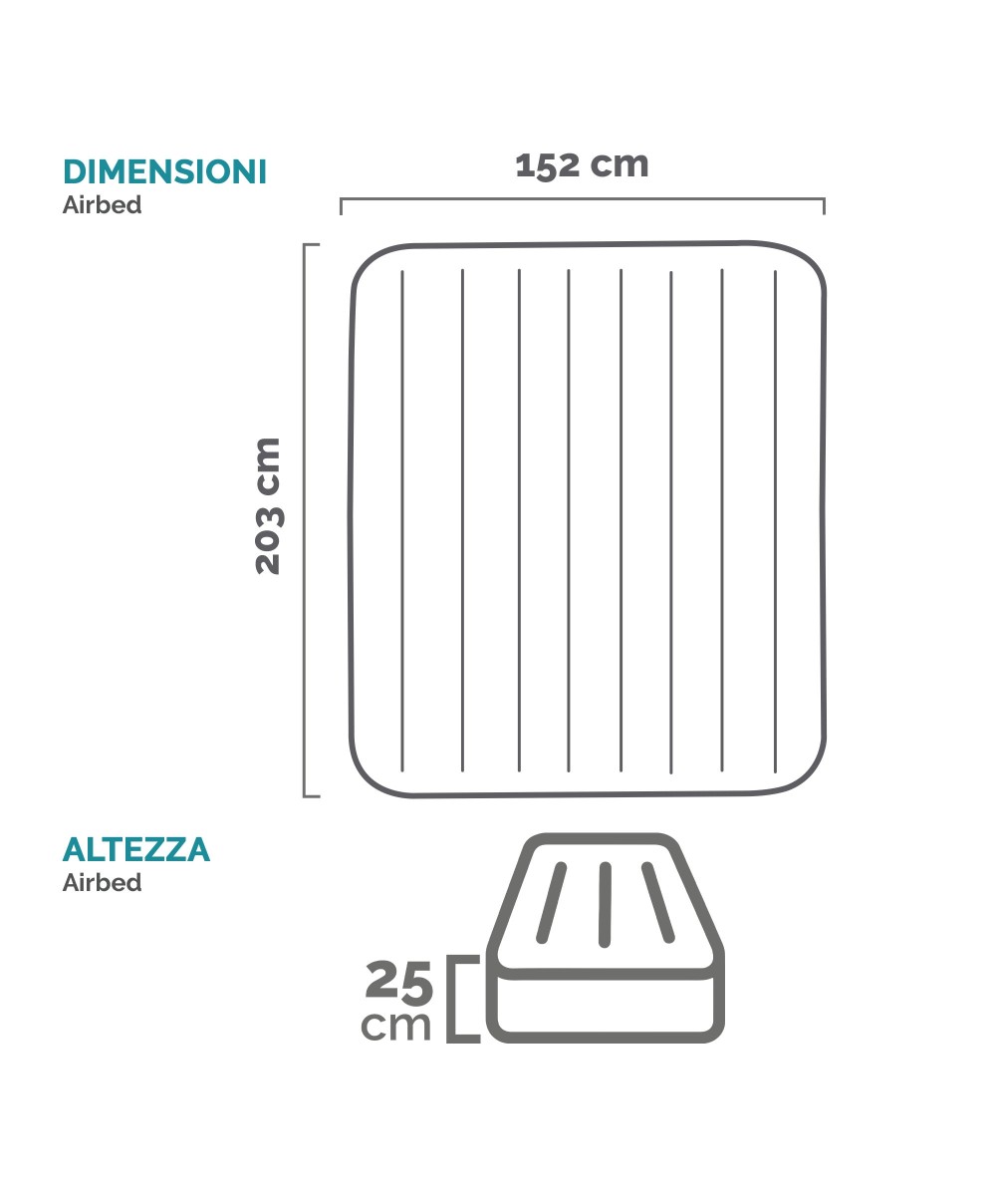 - Struttura Dura-Beam Standard, alto 25 cm, che rende l'Airbed leggero ma stabile