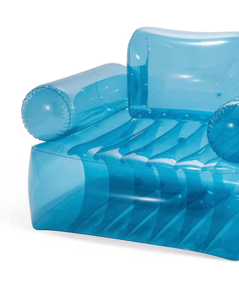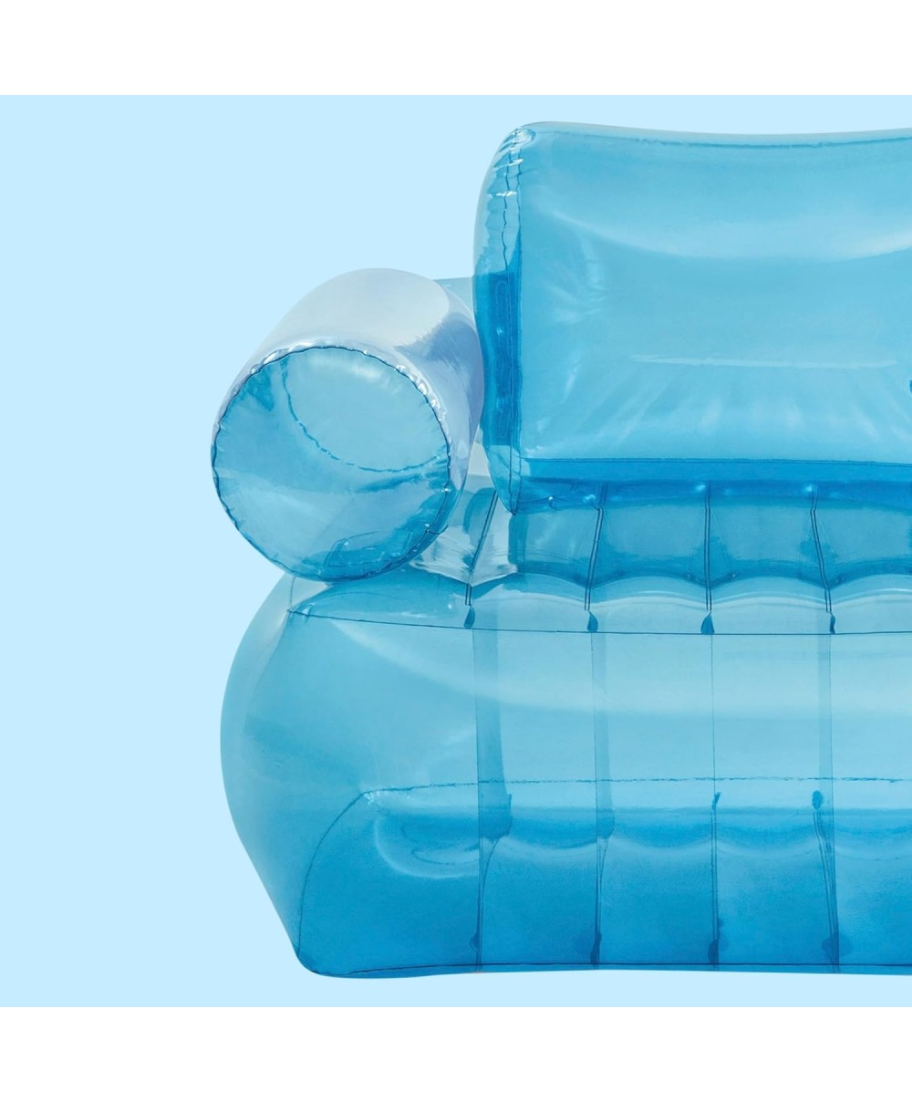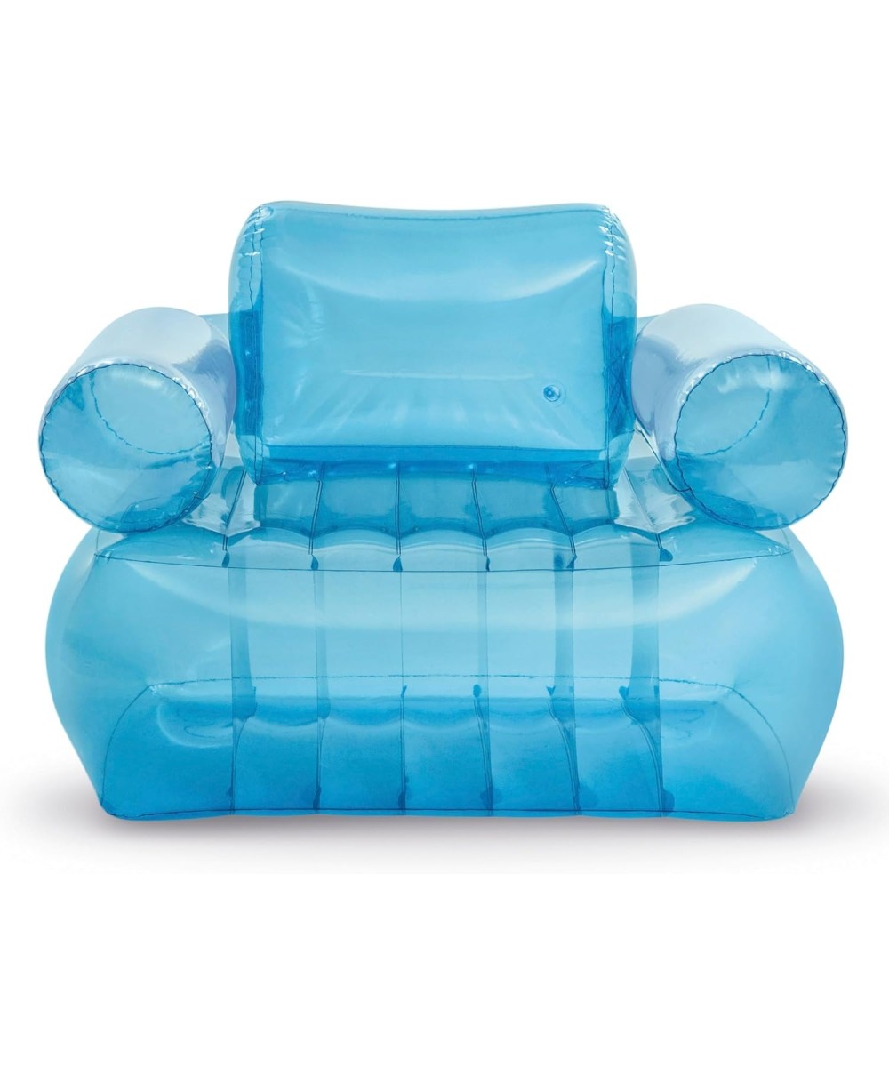 - Poltrona gonfiabile trasparente blu con braccioli e schienale