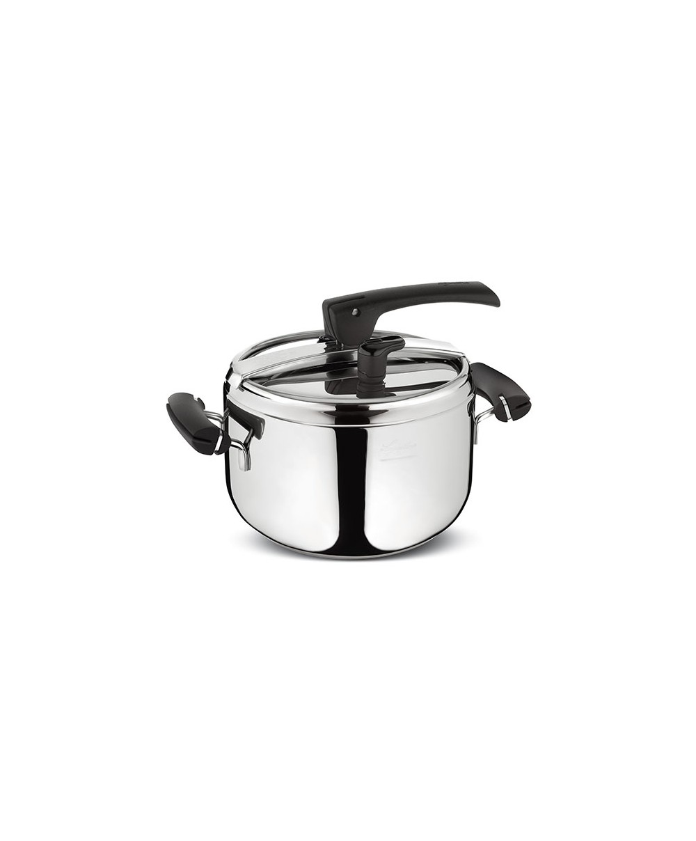 Preziosa è la pentola a pressione di Lagostina che offre la praticità e la naturalità della cottura in pressione. La forma particolare della leva, ed il manico che copre la forcella del meccanismo di apertura, la rendono particolarmente ergonomica ed esteticamente gradevole, anche grazie agli eleganti inserti in bakelite nera. La sicurezza è massima grazie al dispositivo LEVERBLOCK® che blocca la maniglia d'apertura anche con una minima pressione residua all'interno, evitando aperture accidentali, alla valvola d’esercizio a scarico verticale del vapore e alla nuova valvola di sicurezza in silicone.