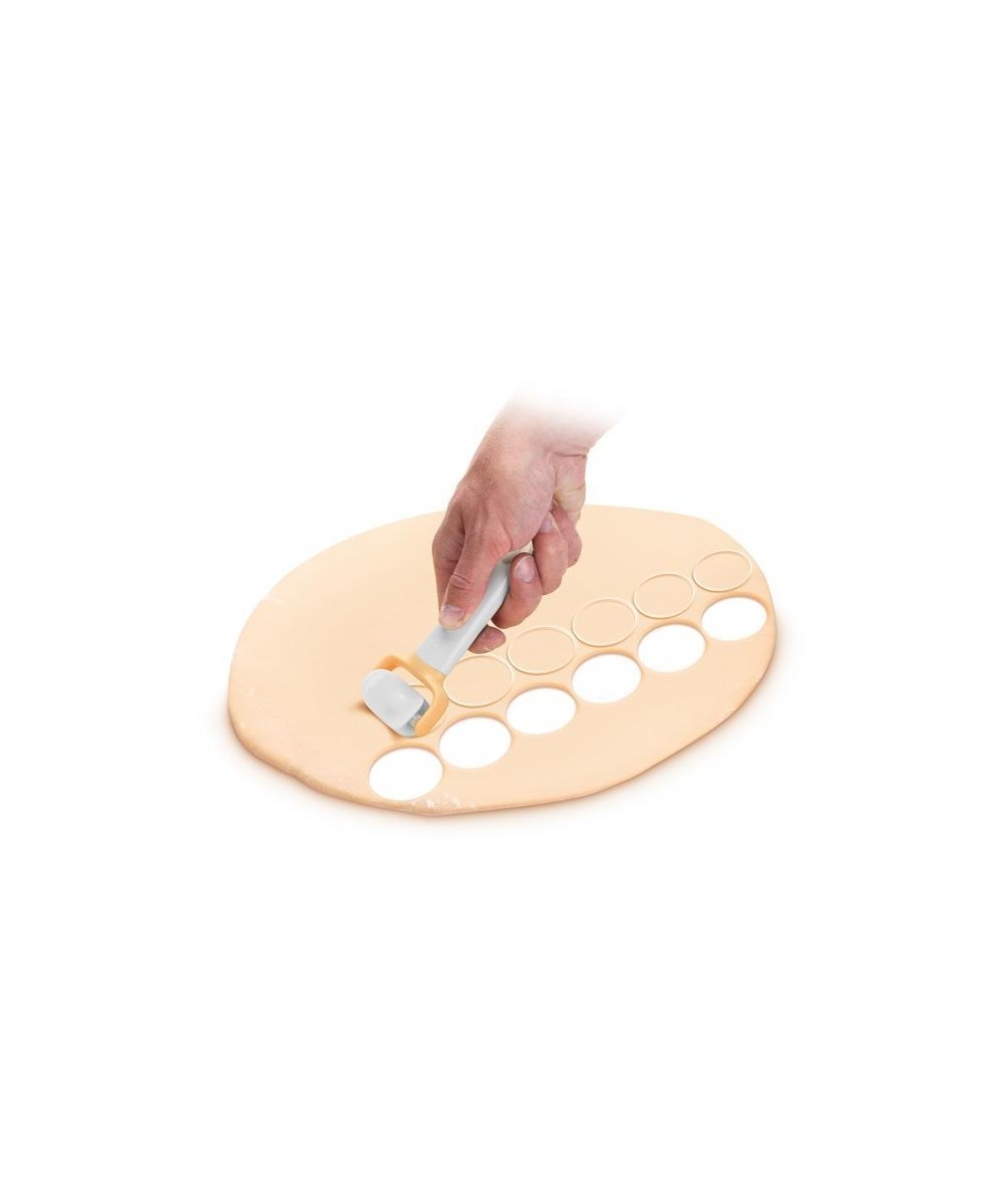 "Per ottenere da un impasto file di cerchi perfetti con uno scarto ridotto al minimo, ti serve il rullo tagliapasta tondo. Ideale se devi preparare in fretta molte pizzette per un antipasto, per ritagliare la pasta in cui avvolgere il ripieno dei ravioli, o preparare dei mini calzoni. Ritaglia con il rullo i biscotti nell’impasto già steso nella teglia, risparmi tempo e non rischi di romperli!