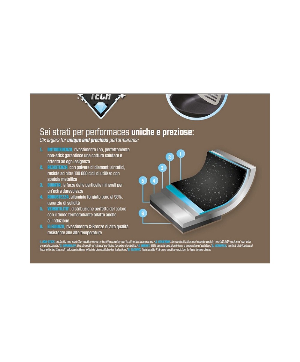 - Rivestimento interno della pentola antiaderente rinforzato con polvere di diamante per una resistenza fino a 100.000 cicli di utilizzo con utensili metallici