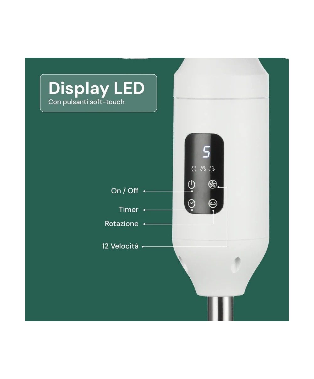 - 12 velocità regolabili tramite pannello di controllo soft touch o telecomando