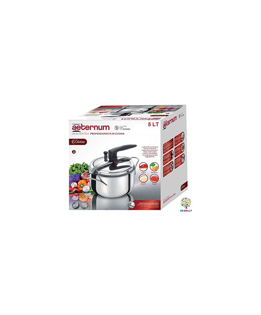 La pentola a pressione Divina 5 litri di Aetermun consente di risparmiare tantissimo tempo in cucina. Con la pentola a pressione di possono cucinare carni, verdure, risotti, sughi e tantissimi altri alimenti.