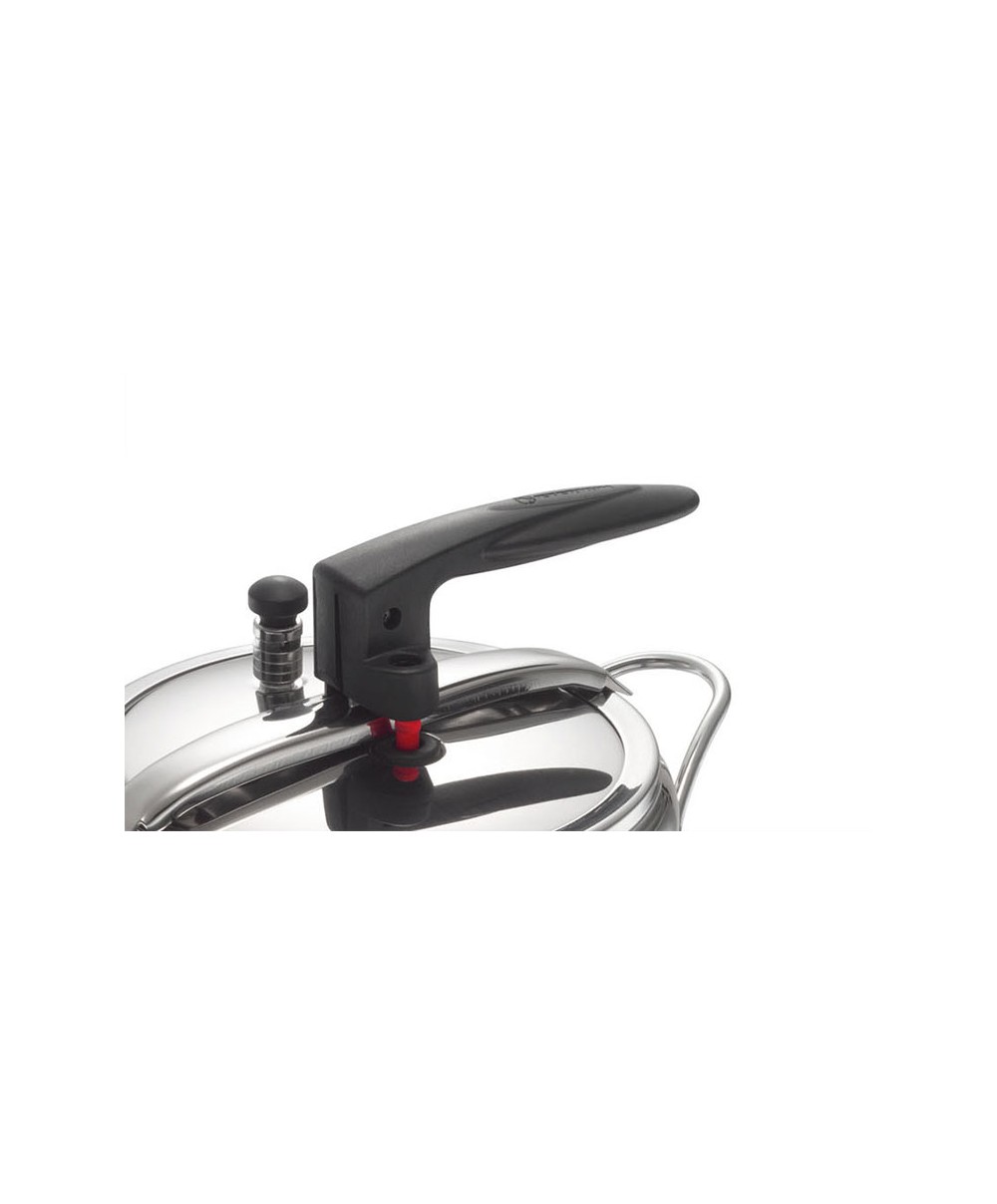 - SystemBlock®: il dispositivo "segna pressione" che impedisce l'apertura del coperchio quando è presente una minima pressione all'interno della pentola.- la valvola di esercizio che è dotata di un pomolo atermico che scarica regolarmente il vapore in eccesso in maniera costante per evitare l'innalzamento della pressione- La valvola di sicurezza che è un sistema ad azione termo-meccanica che assicura la massima affidabilità