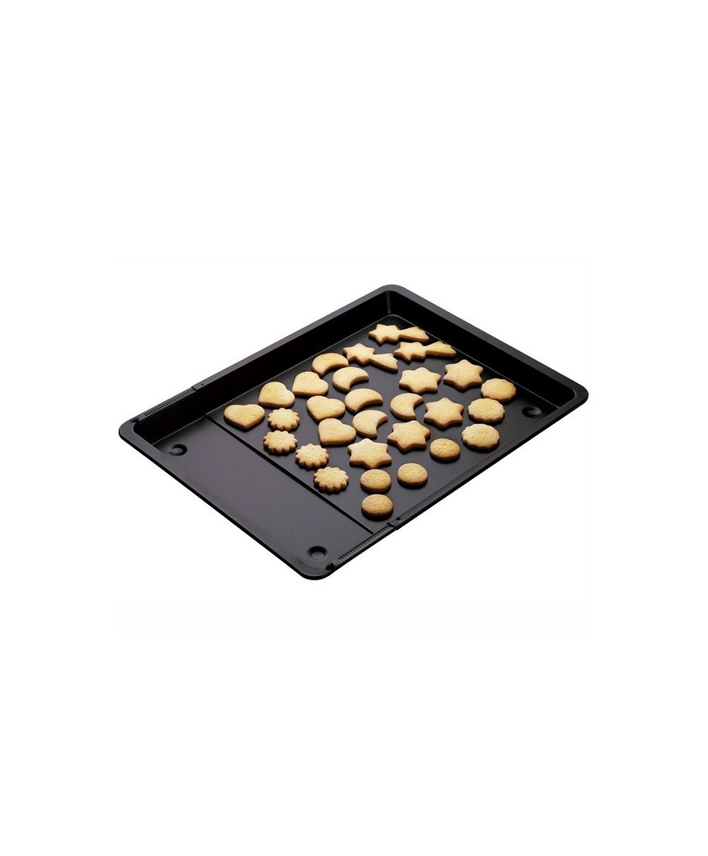 "Grazie alla teglia 047467 di Eva Collection potrete regolare la lunghezza della teglia in base alla dimensione del vostro forno. Realizzata con materiale di rivestimento antiaderente. È ideale per la cottura di biscotti o pizza.