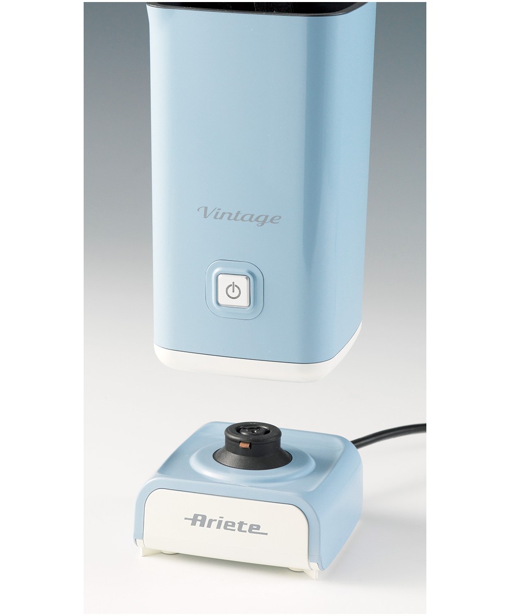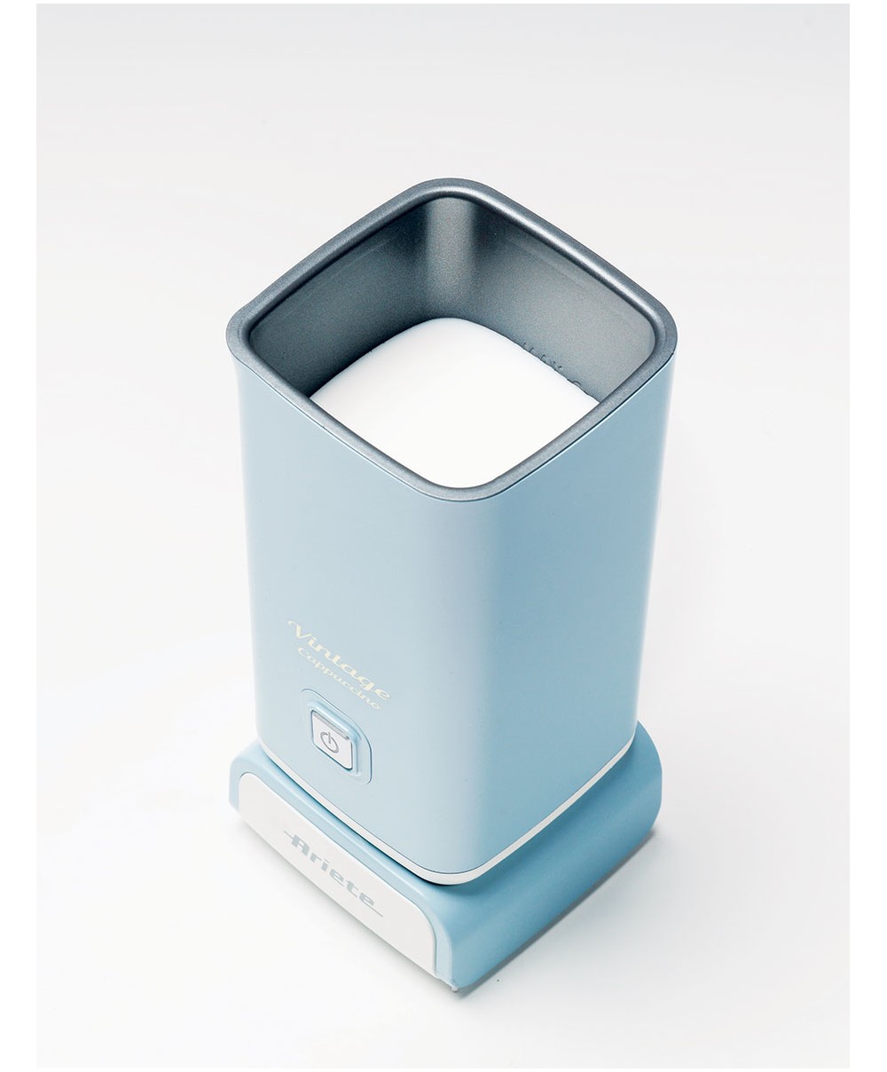 Vintage Cappuccino è il montalatte Ariete in stile retrò , multifunzione e facile da utilizzare: con una potenza di 500W , una capacità di 140 ml per il latte montato e 250 ml per il latte riscaldato, un coperchio trasparente che permette di controllare facilmente la schiuma, un solo pulsante per 2 funzioni: schiuma calda e fredda. E' ideale per realizzare una densa schiuma in pochi secondi e preparare molte bevande diverse con caffè e latte (cappuccino, crema di latte, caffè shakerato, cioccolato). Il rivestimento antiaderente interno interno rende facilissima la pulizia. Si spenge automaticamente e mantiene fredde le pareti esterne.