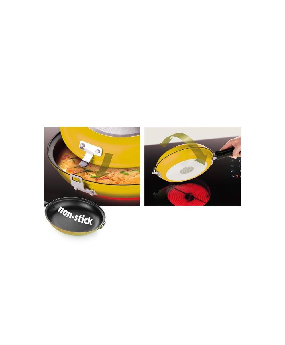 Perfetta per preparare frittate tortilla omelette... È formata da due padelle in alluminio con rivestimento antiaderente di alta qualità che previene l'attaccamento dei cibi sul fondo che agganciate permettono di cuocere facilmente i cibi da entrambi i lati senza doverli rivoltare. Possono anche essere utilizzate separatamente.
