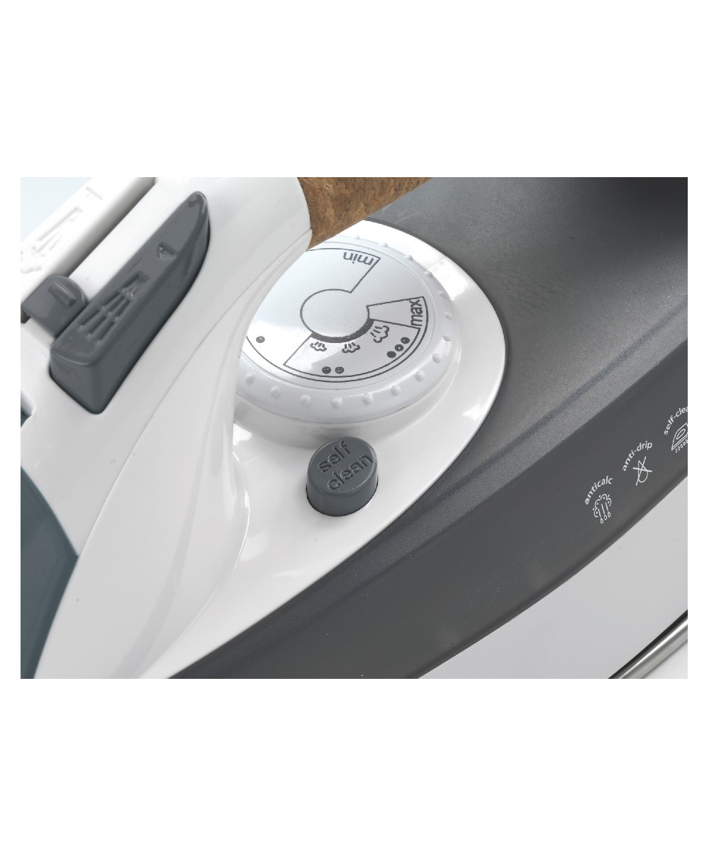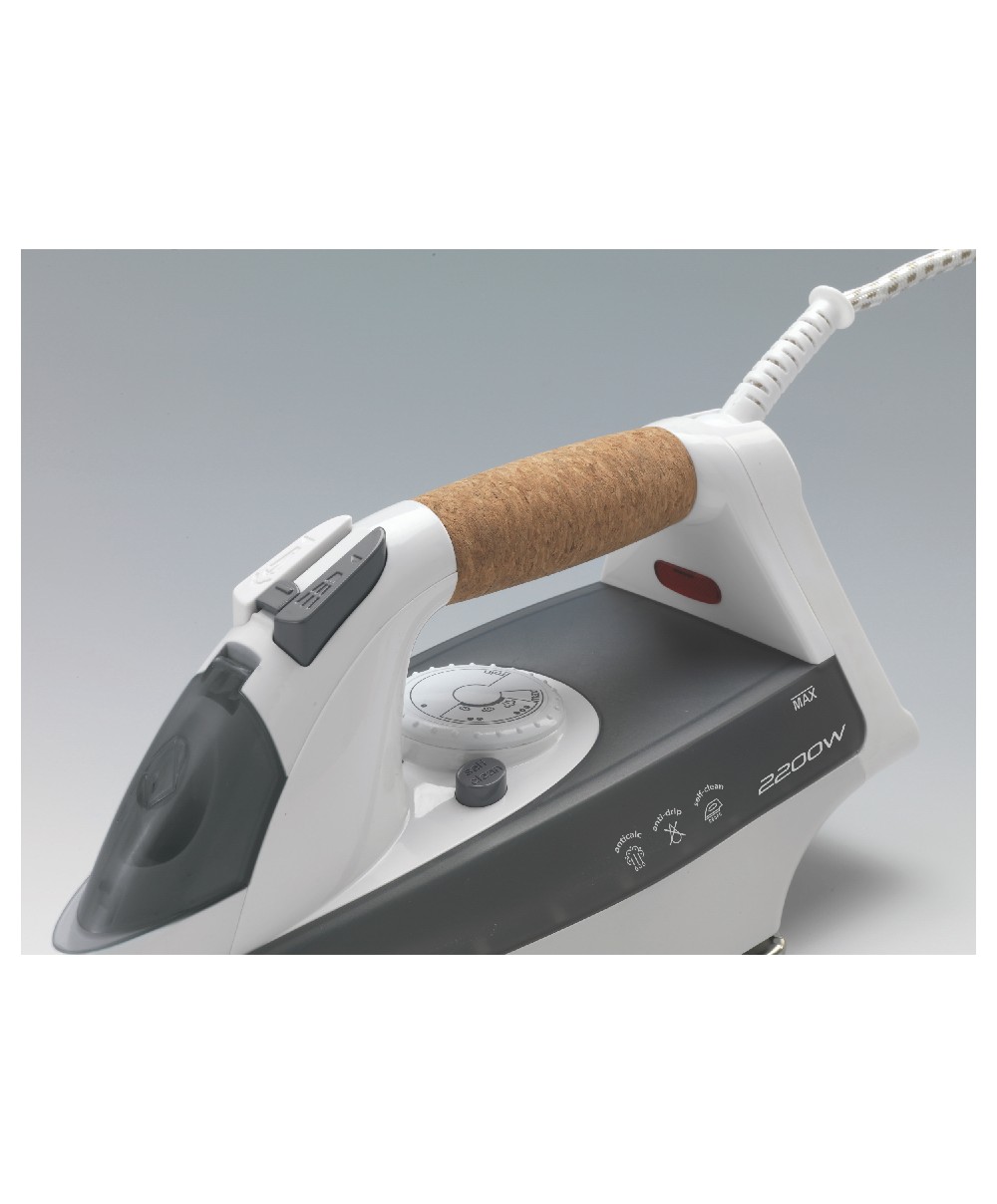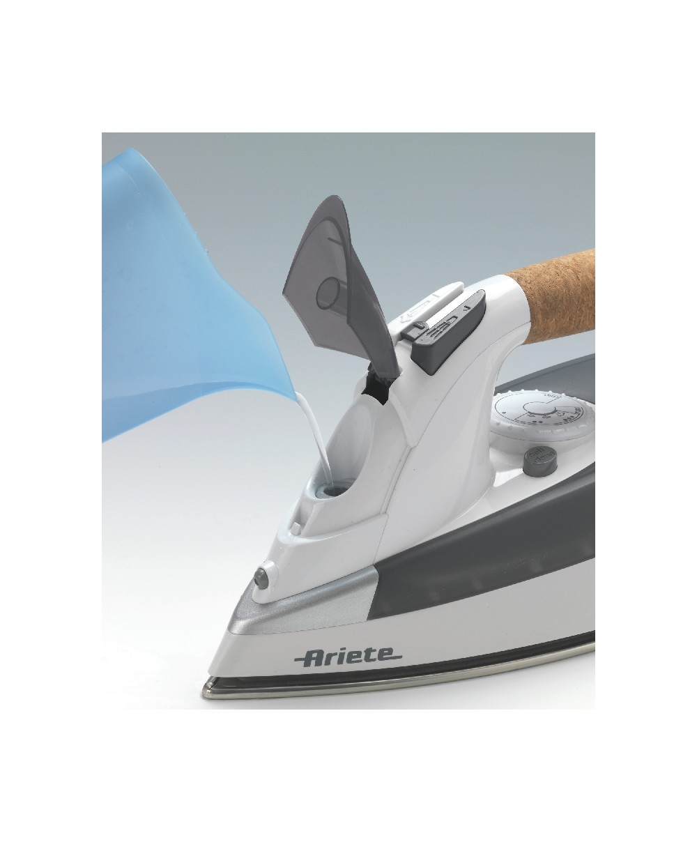 Nuovo Steam iron 2200W di Ariete: tradizione e professionalità direttamente a casa tua. II manico sughero professionale permette una presa maneggevole e antiscivolo e garantisce una stiratura piu duratura con meno fatica. La piastra ultrascorrevole in acciaio inox è ideaIe per tutti i capi, anche quelli piu difficili. Si riempie orizzontalmente ed è dotato di sistema di auto-pulizia, anti-gocciolamento e anti-calcare. Facile stirare con Ariete!