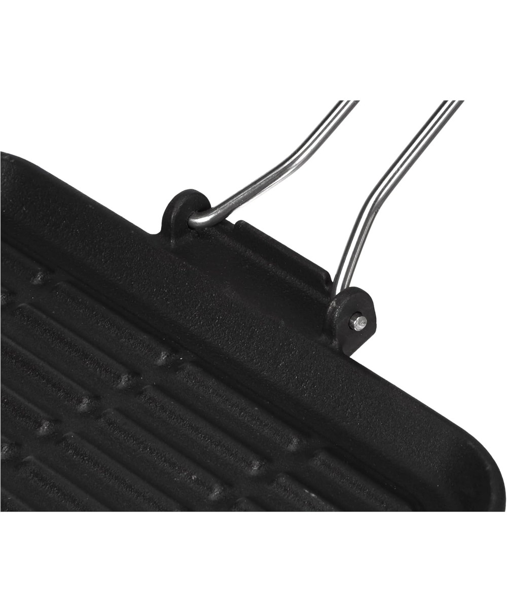 Bistecchiera in ghisa, manico antiscivolo pieghevole, fondo sagomato per una cottura ottimale senza grassi aggiunti. Adatta a piano a induzione.