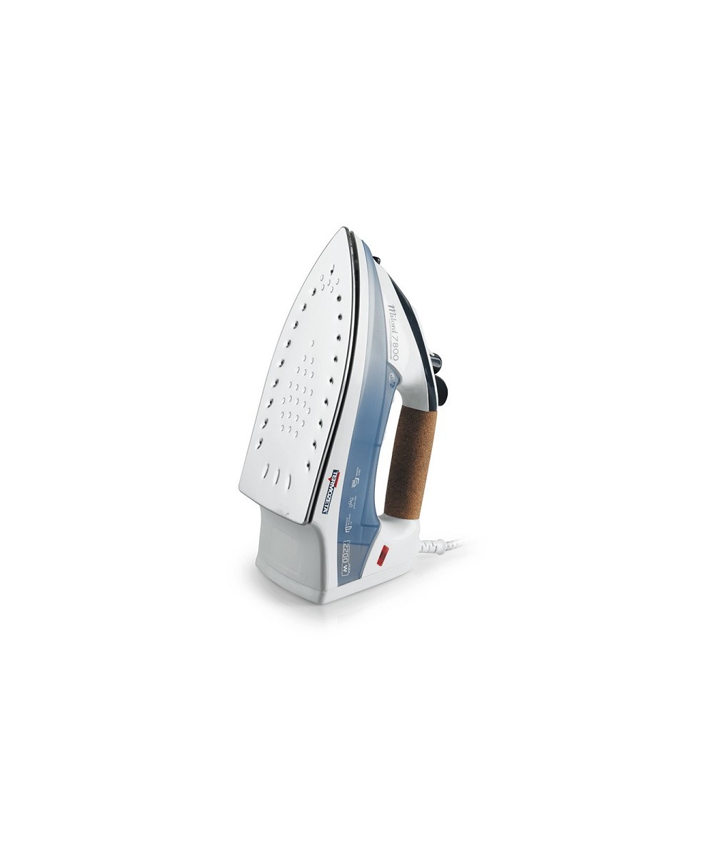 Milord 7800 Professional è il ferro da stiro a vapore con sistema anticalcare permanente, pastra in acciaio inox e manico in sughero. Potenza: 2200W