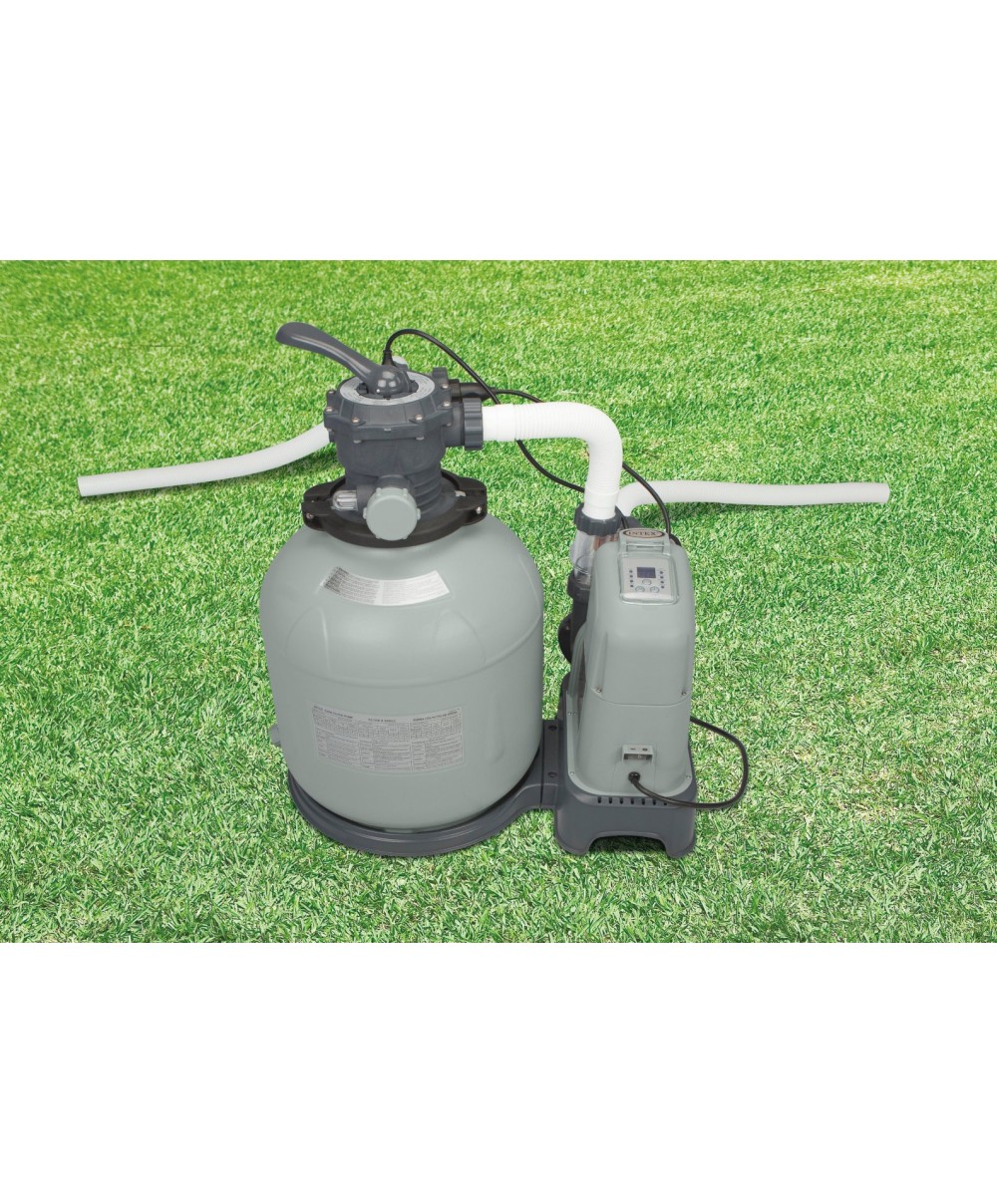 - Pompa a sabbia combinata con generatore di cloro da 10.000 l/h Intex (utilizzo consigliato con questa piscina per 5 o 6 h al giorno)