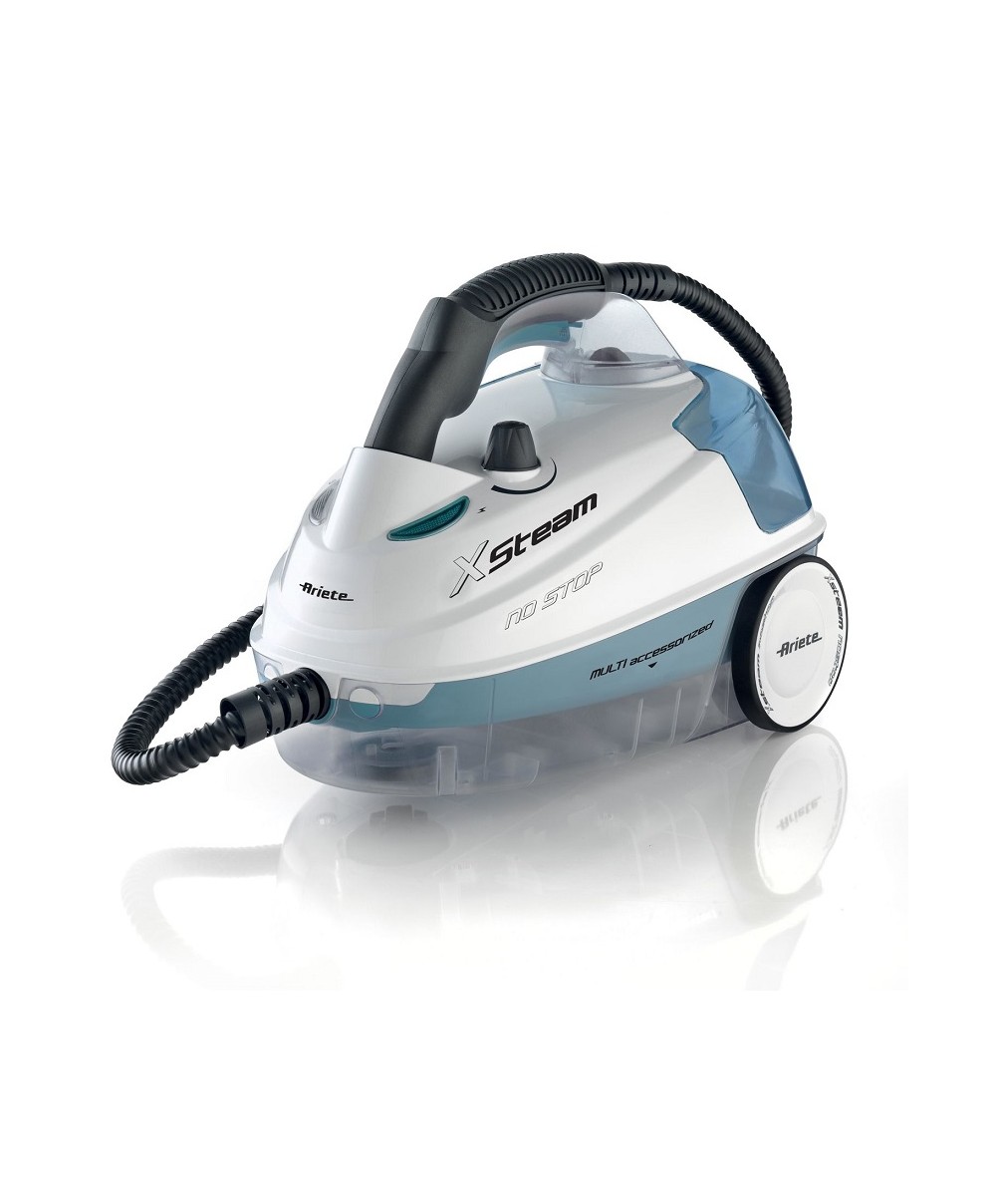 Ariete presenta il pulitore a vapore a traino con vapore illimitato. XSteam no stop 4147 pulisce senza detergenti e con la sola forza del vapore tutte le superfici. È dotato di serbatoio d'acqua ricaricabile che permette di essere usato continuamente senza dover attendere che la temperatura torni in temperatura prima di procedere con il lavoro di pulizia. Il comodo vano porta accessori di avere tutti gli accessori a disposizione.
