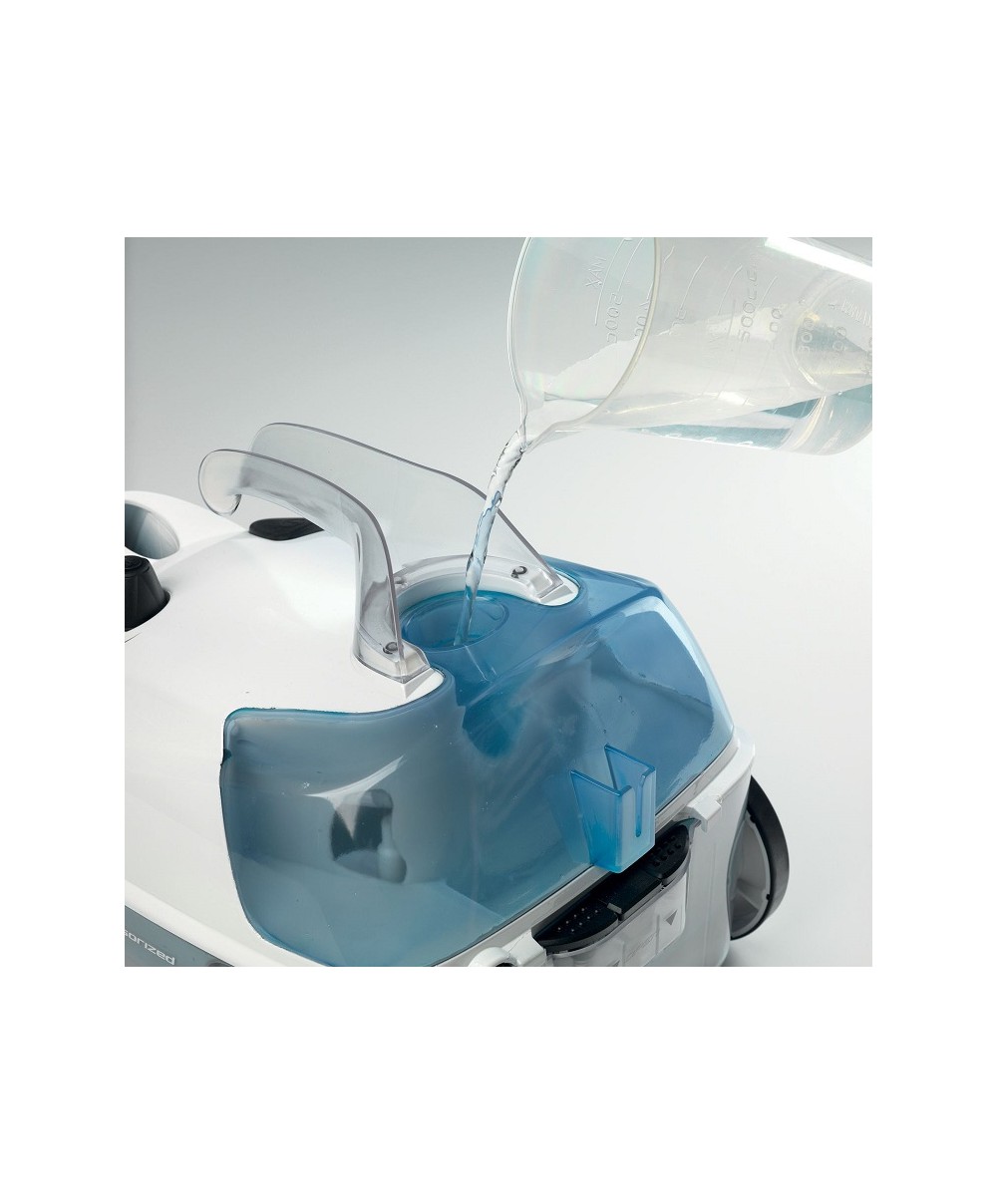 "Pulitore a vapore a traino con autonomia illimitata. Grazie alla forza naturale del vapore XSteam no stop pulisce tutte le superfici domestiche garantendo la massima igiene senza l’aiuto di detergenti chimici, uccidendo fino al 99,9% di germi e batteri. La regolazione del vapore assicura la corretta erogazione in base al tipo di pavimento selezionato e le superfici pulite si asciugano in pochi minuti. Il serbatoio dell'acqua ricaricabile è veloce e continuo e permette la pulizia non-stop facendo risparmiare tempo.