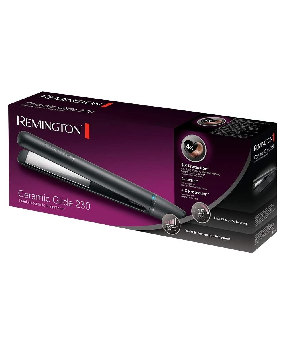 Con la piastra S-3700 Ceramic Glide 230 di Remington ottieni capelli lisci, luminosi, morbidi e protetti dal calore.
