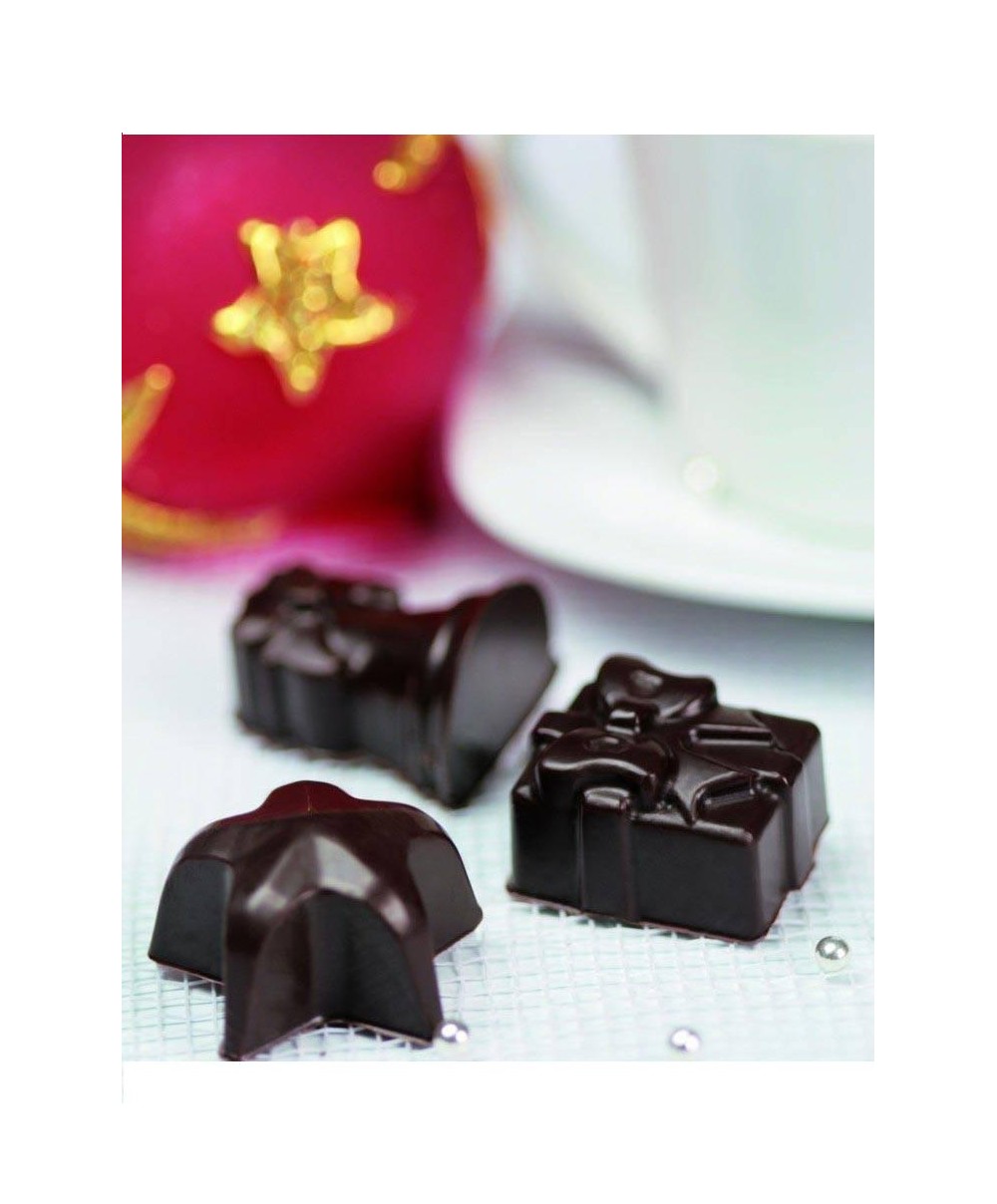 Christmas, della linea Easy Choc, è lo stampo per cioccolatini che raccoglie le forme di pacchetto natalizio, di campanella e di stella di Natale