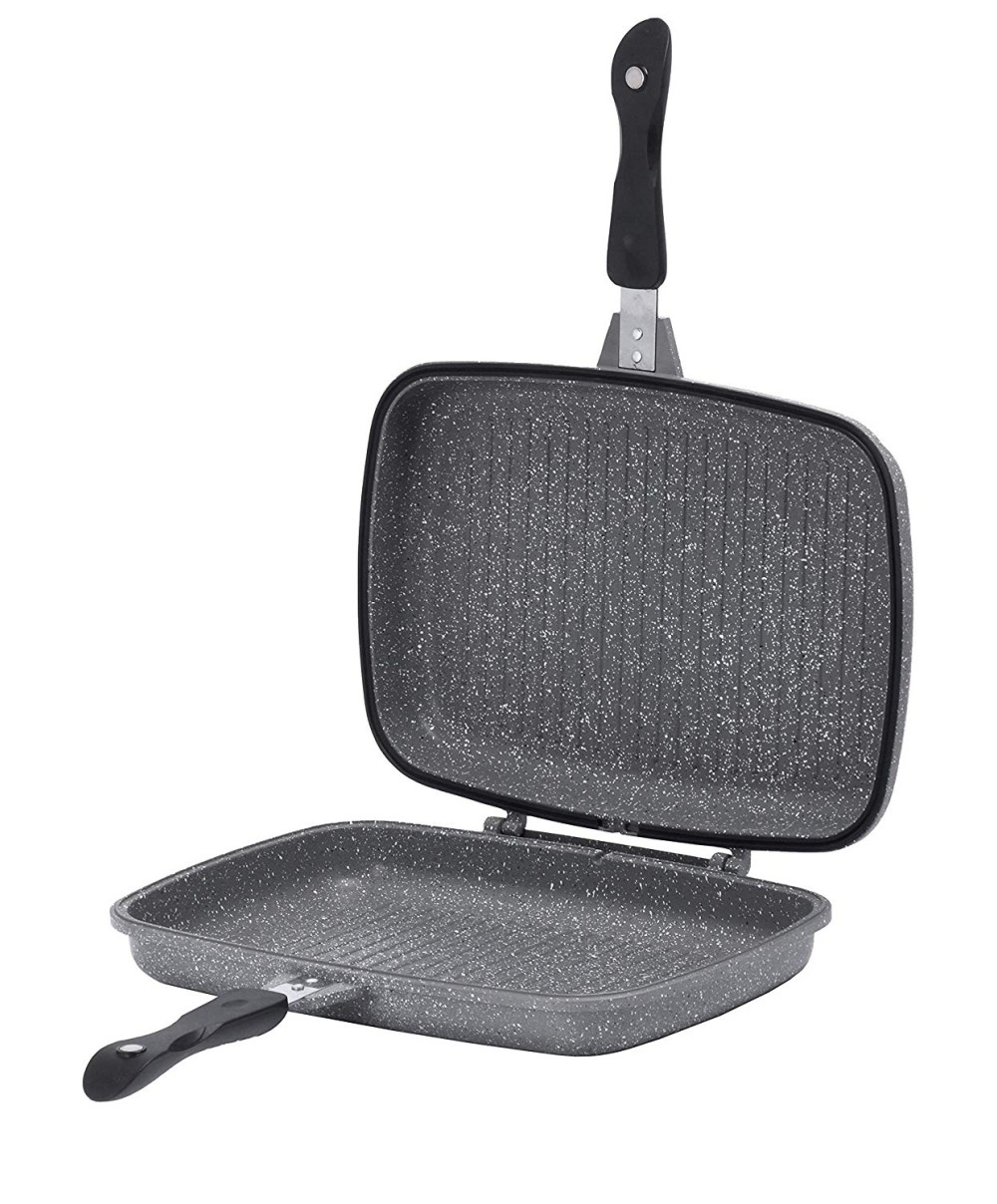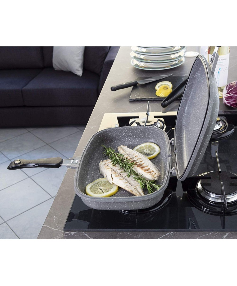 La Grill Doppia racchiude numerosissime combinazioni per affrontare ogni tipo di cottura: le padelle possono essere utilizzate separatamente o combinate sfruttando la chiusura a incastro. Il fornetto è in grado di simulare una cottura al forno grazie alla chiusura e alla circolazione interna dell'aria. La doppia superficie riscaldata, una volta sovrapposte le padelle, permette di girare facilmente alcune preparazioni senza alcuna difficoltà.