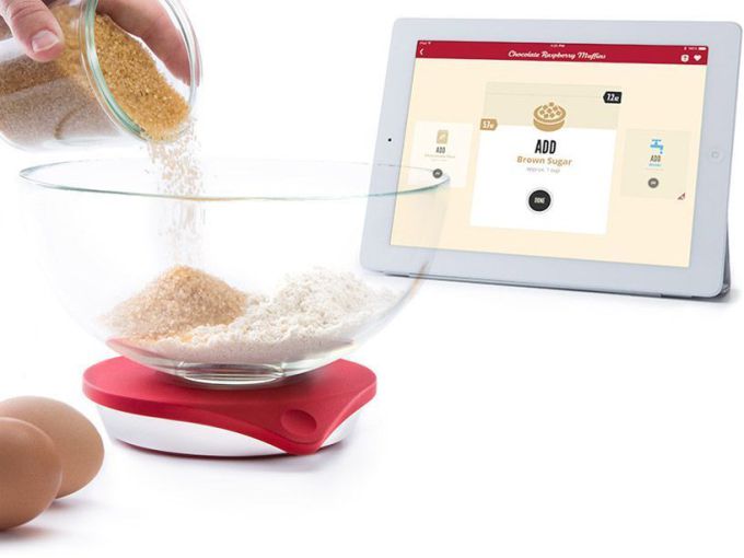 Alla bilancia è collegata tramite Bluetooth un’applicazione che ha memorizzate al suo interno decine di migliaia di ricette, nel momento in cui inseriamo l’ingrediente nella ciotola l’applicazione ci indica se abbiamo inserito la giusta quantità o è necessario eliminare o aggiungere determinati grammi di prodotto.